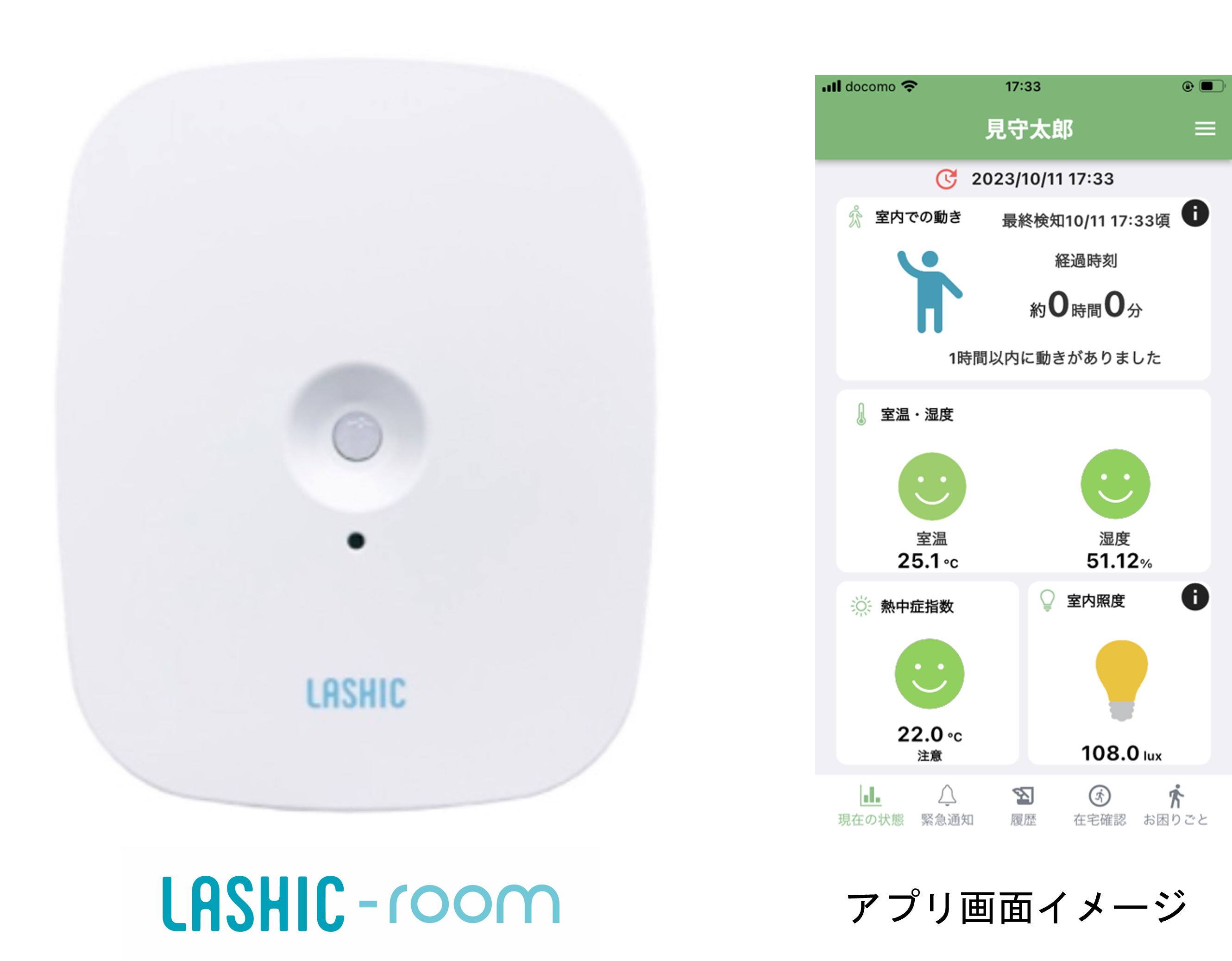 介護施設入居者居室内や高齢者住宅の「温度」「湿度」「照度」「運動量・動き」のIoTによる遠隔管理を可能にするセンサー・システム『LASHIC(ラシク)』を製造・販売するインフィック株式会社(東京本社:東京都千代田区、代表取締役:増田 正寿、以下、インフィック)は、2023年12月29日、独居高齢者を見守るご家族向けの新サービス「LASHIC tayori(ラシク たより)」を市場に公開しました。