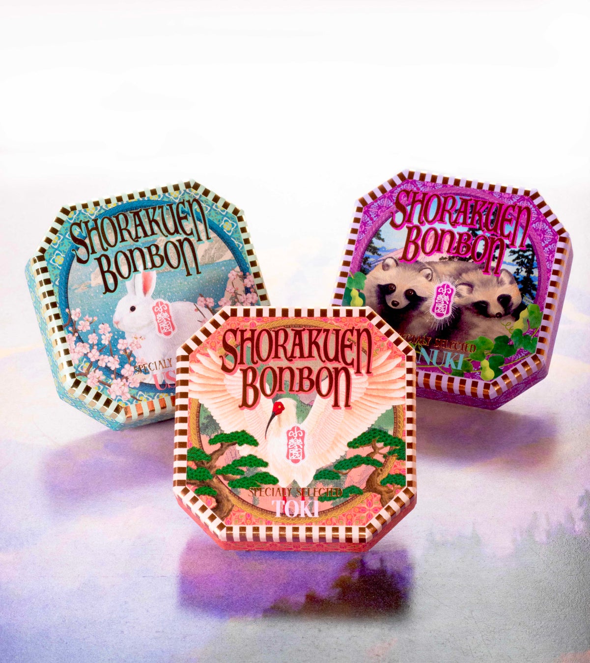 『小楽園ボンボン ¥1,440(税込) トキ、ホンドタヌキ、サドノウサギ』