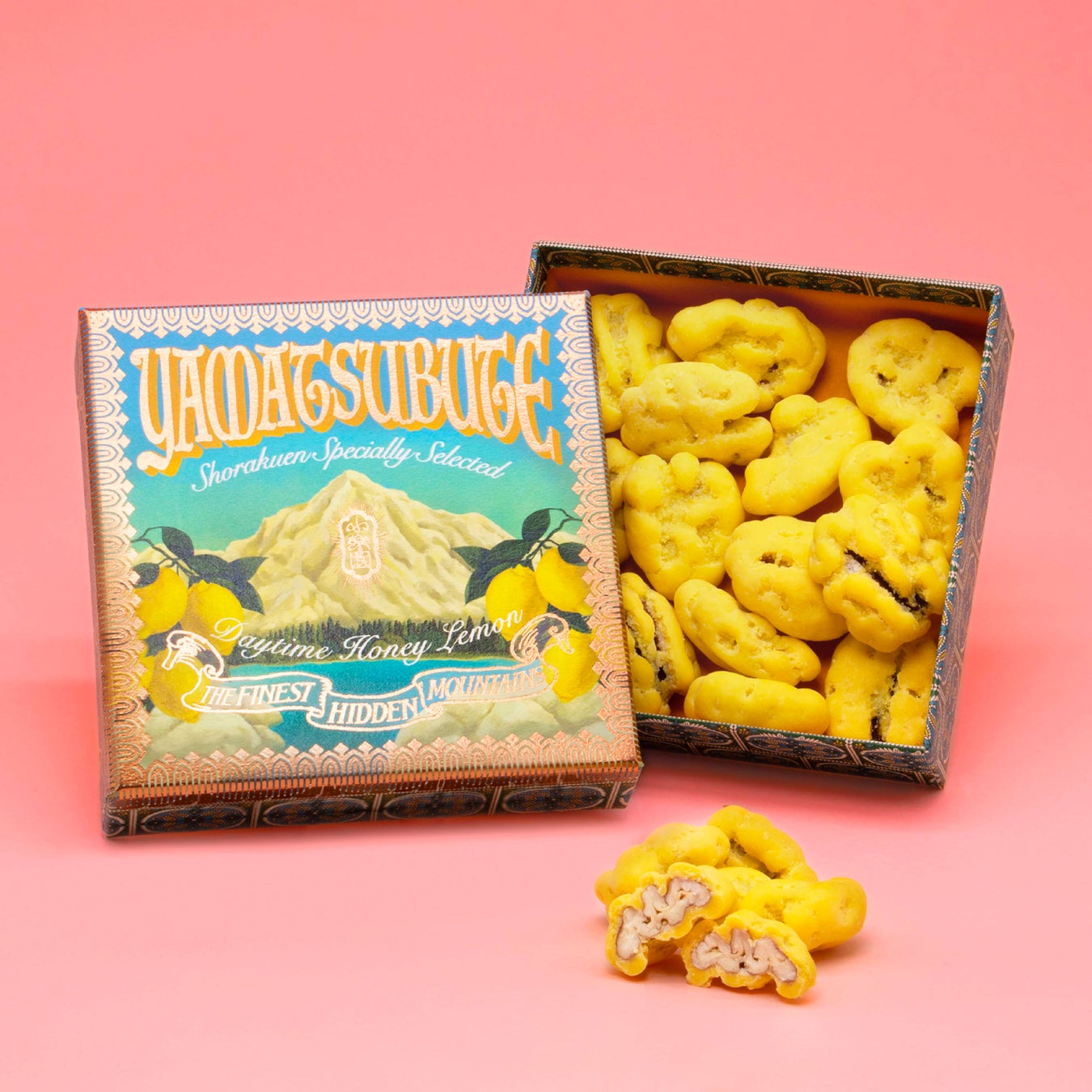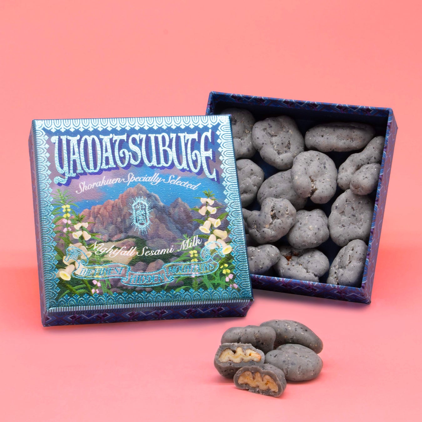 小楽園の珍山からこぼれ落ちた「礫(つぶて)」のようなチョコレート菓子、『YAMATSUBUTE/ 山礫』も箱菓子として新発売。特定の時間帯にしか現れない妖艶な山の表情をイメージした 3種のフレーバーを、小楽園らしい華美で御伽噺の世界のような貼り箱に詰めてお届けいたします。