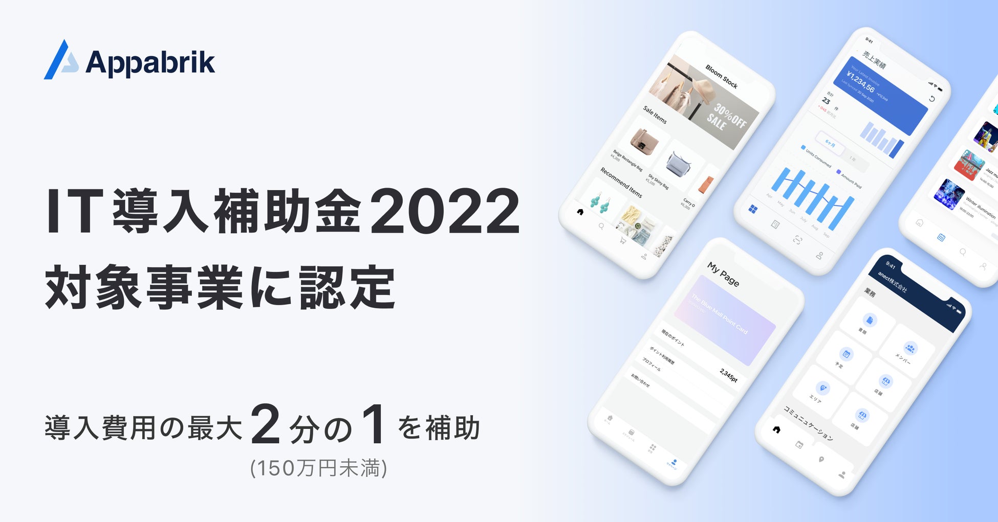 この度「Appabrik」では、モバイルアプリに関する開発・運営システムをワンストップで提供するプラットフォームを通して事業拡大の貢献を目指し、IT導入補助金2022へ登録認定いただきました。