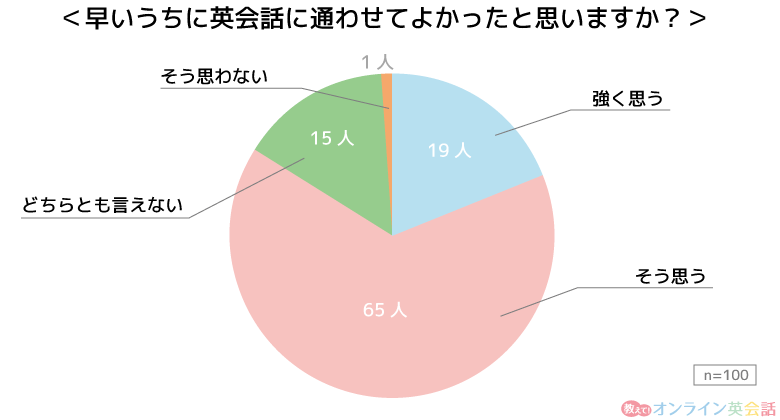 - 早くから英会話教室に通わせてよかったという人は全体の84%