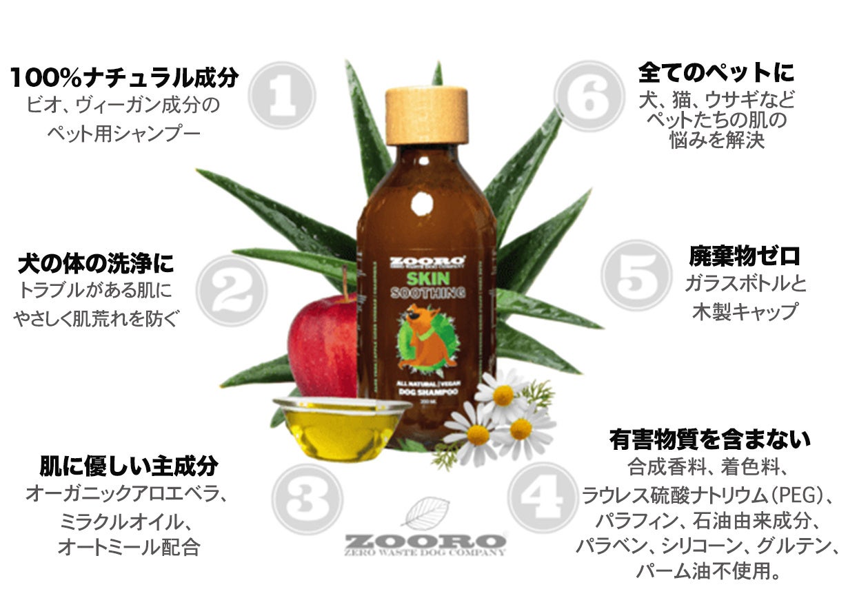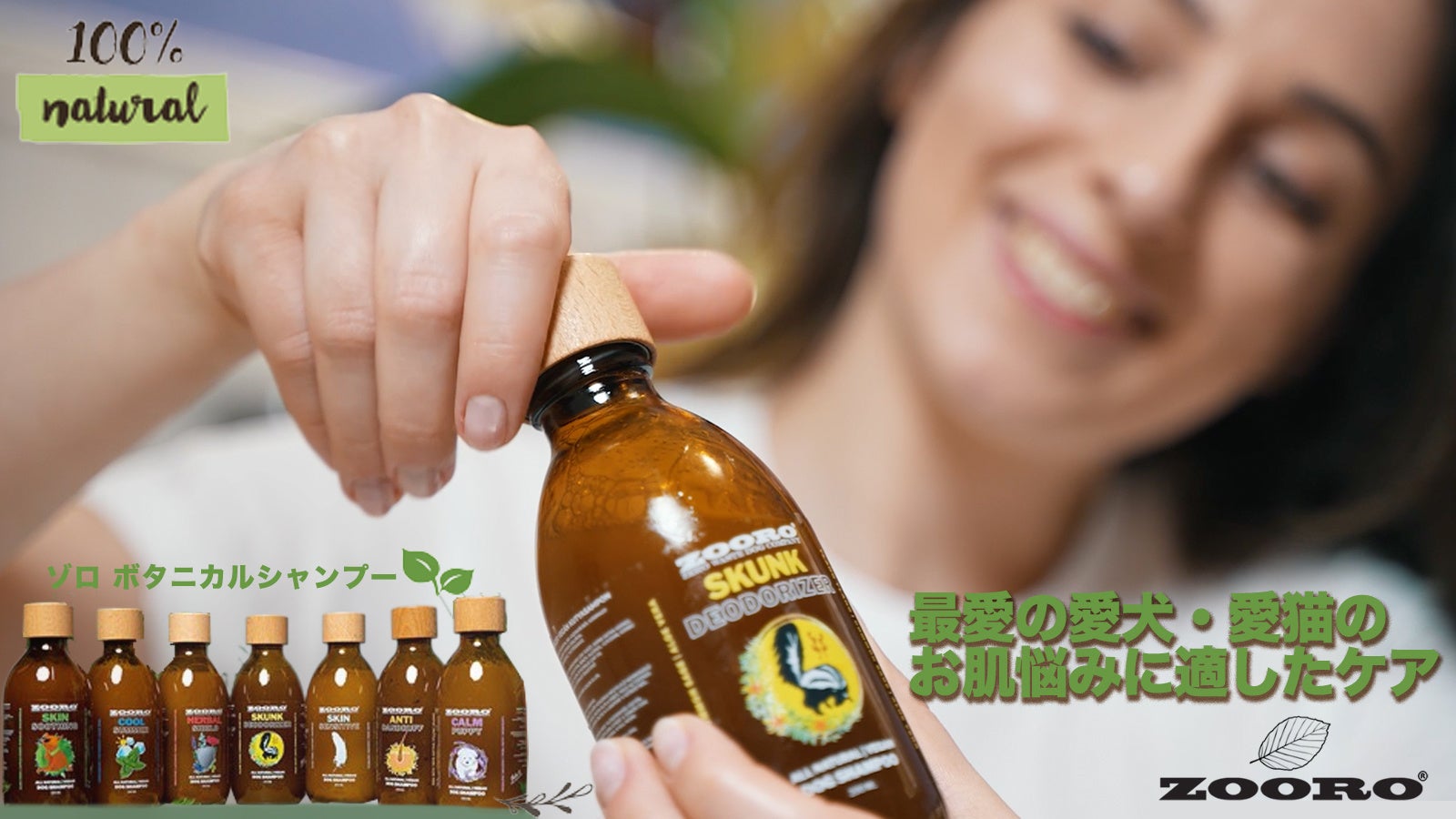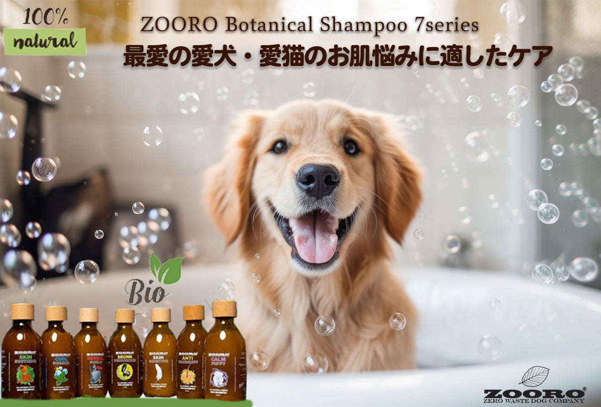「ZOORO ゾロ ボタニカルシャンプー」は、お肌にやさしい植物由来の成分のみを使用したシャンプーです。ペットたちのお肌の悩みにフォーカスし、ケミカル成分や動物性成分を使用せず、犬猫・その他のペットたちの肌荒れを防ぎ、肌を健康にするヴィーガン・シャンプーです。