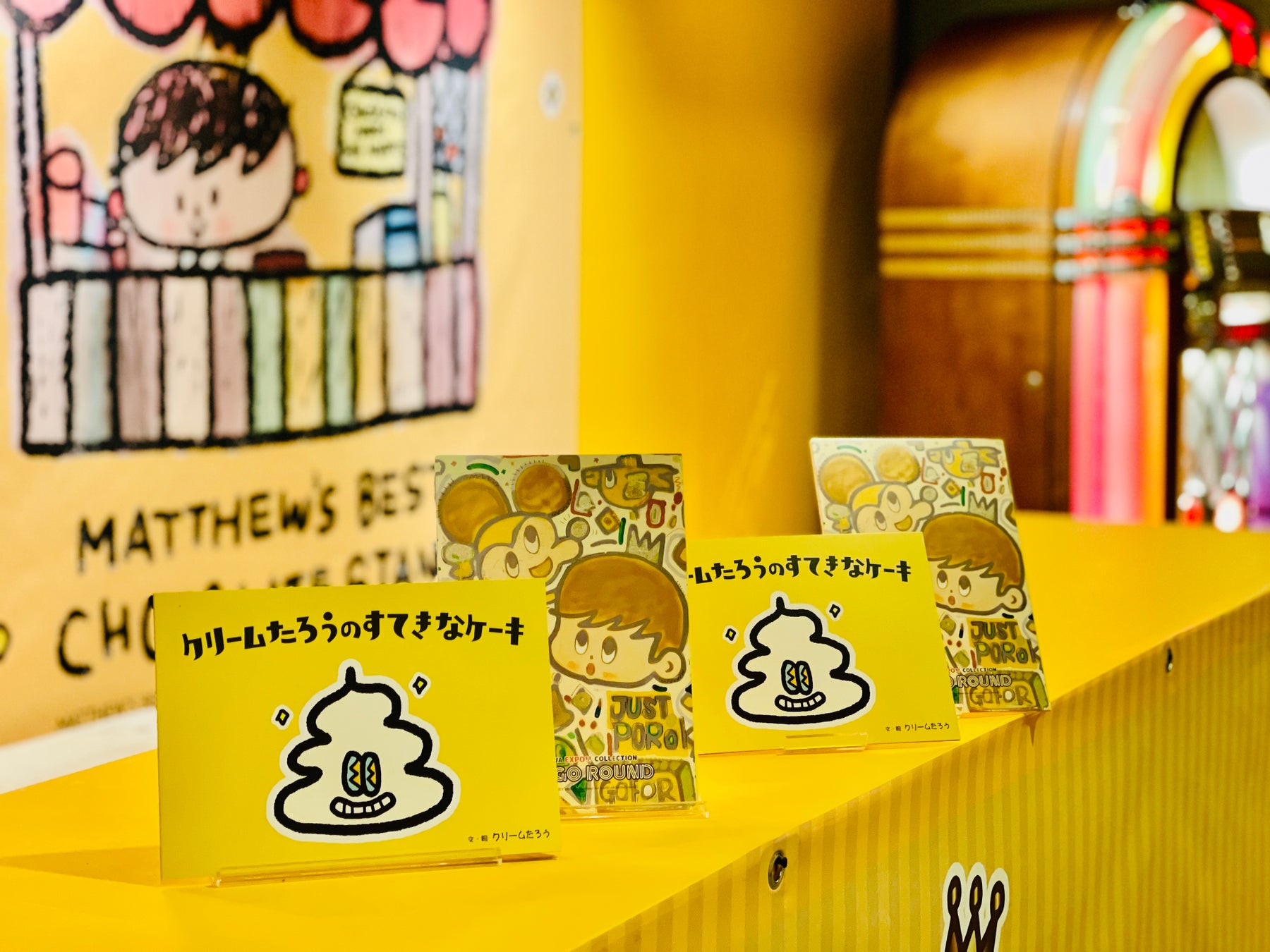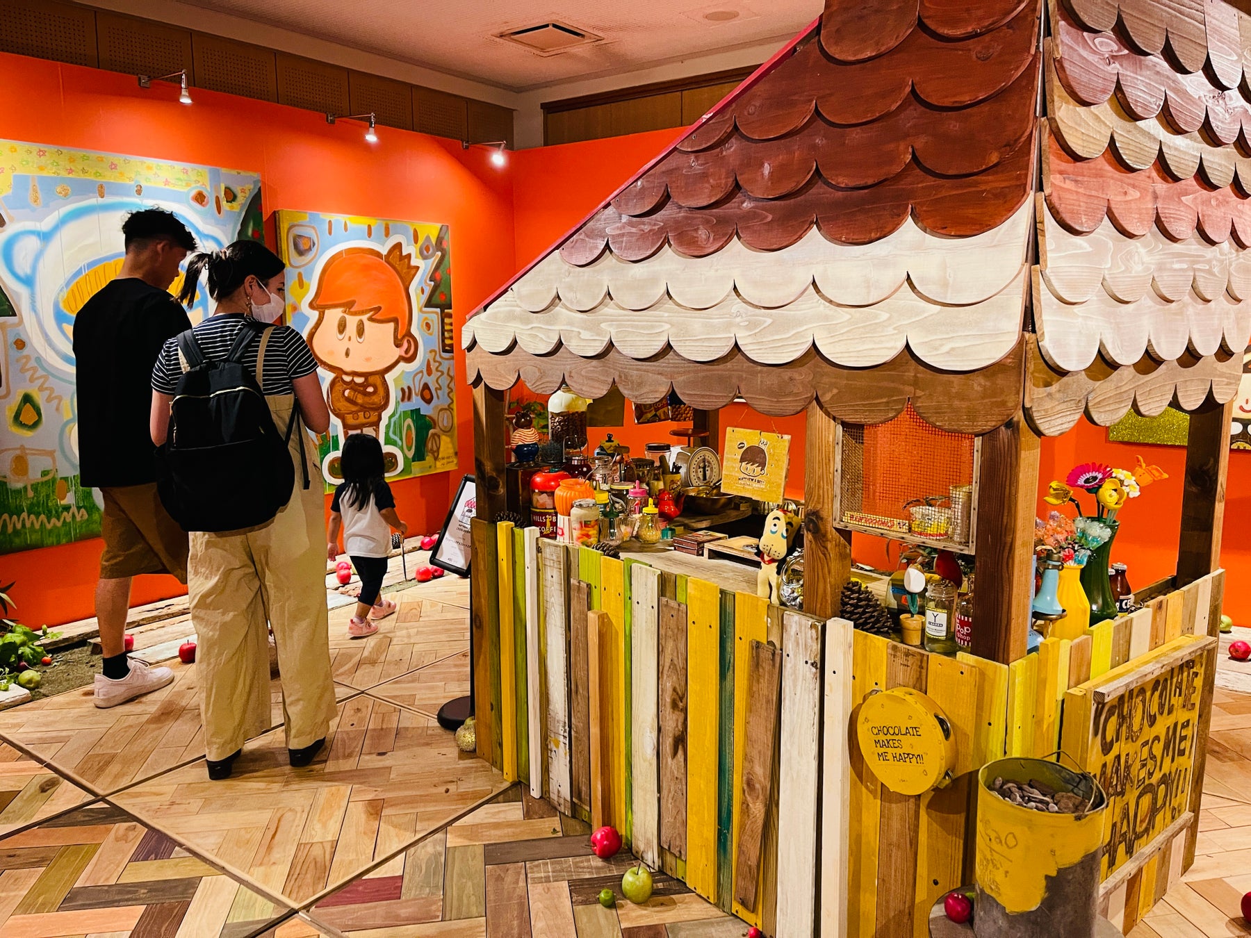 今展の見どころの一つが沖縄初公開の大型立体作品「マシューくんのチョコレートスタンド」。チョコの甘い香りやチョコ作りの音の演出も楽しい。