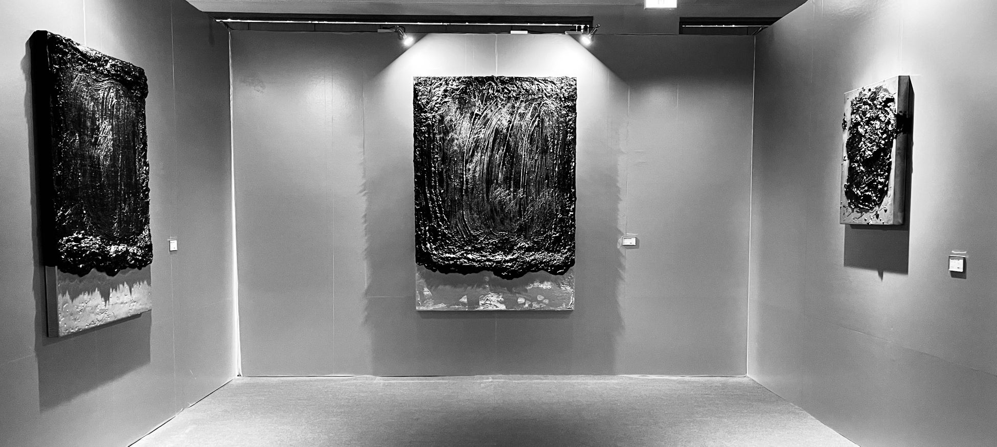 抽象画のエリアでは重厚感溢れる最新作「Monolith(モノリス)」と「Lamination(ラミネーション)」の最新作を堪能できる。