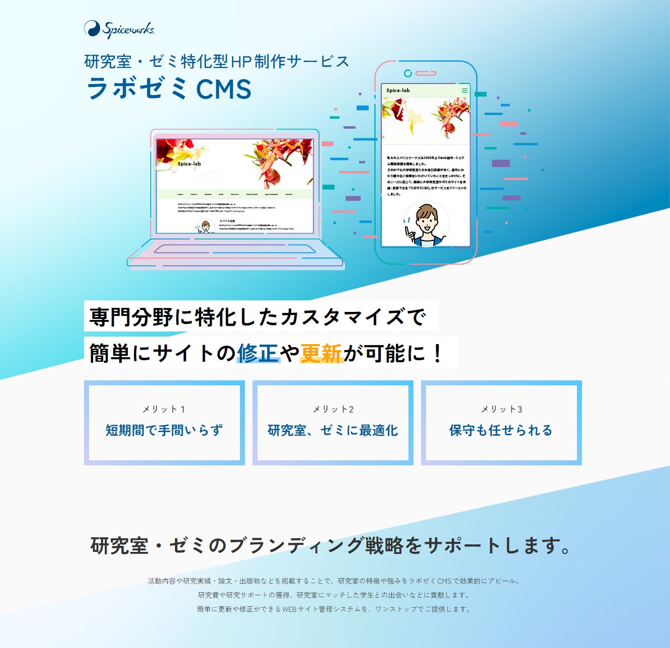 株式会社スパイスワークス(東京都千代田区、代表取締役:関根聖二)は、研究室やゼミの活動を効果的にアピールするためのホームページ制作・運用サービス「ラボゼミCMS」の提供を開始しました。 https://labsemicms.com/ 本サービスは、大学の研究室やゼミのブランディングを強化し、研究費や学生の獲得を支援することを目的としています。