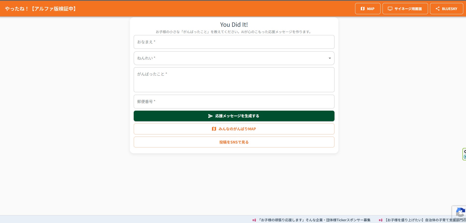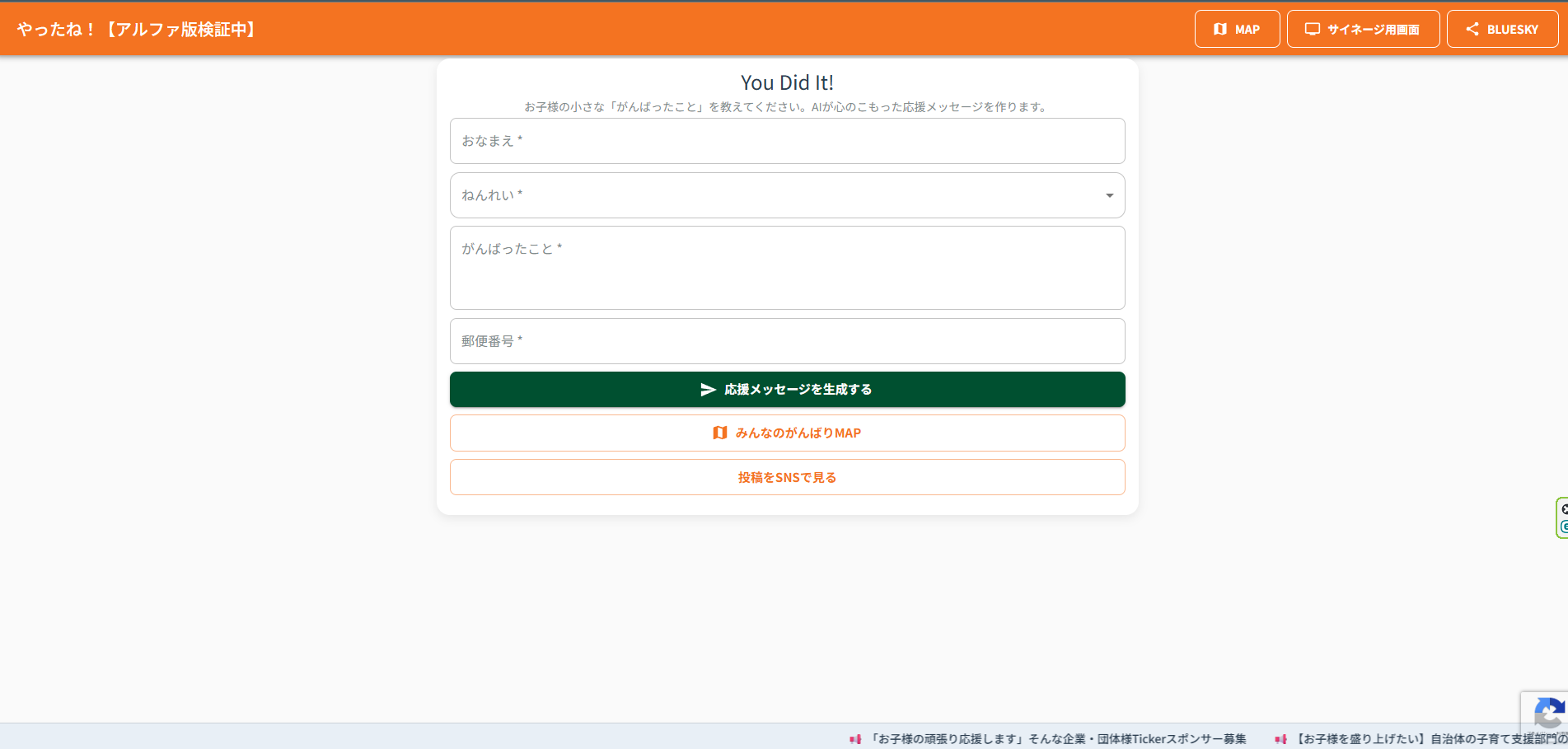 現役眼科クリニック院長でNYAUW代表が開発した子育て支援サービス「You Did It!(やったね!)」は、子どもの日々の小さな成功体験をAIが励ましのメッセージで称え、自己肯定感を育む無料Webアプリです。