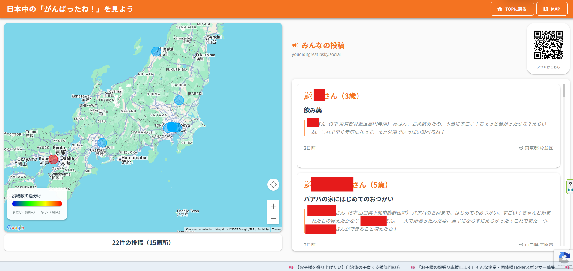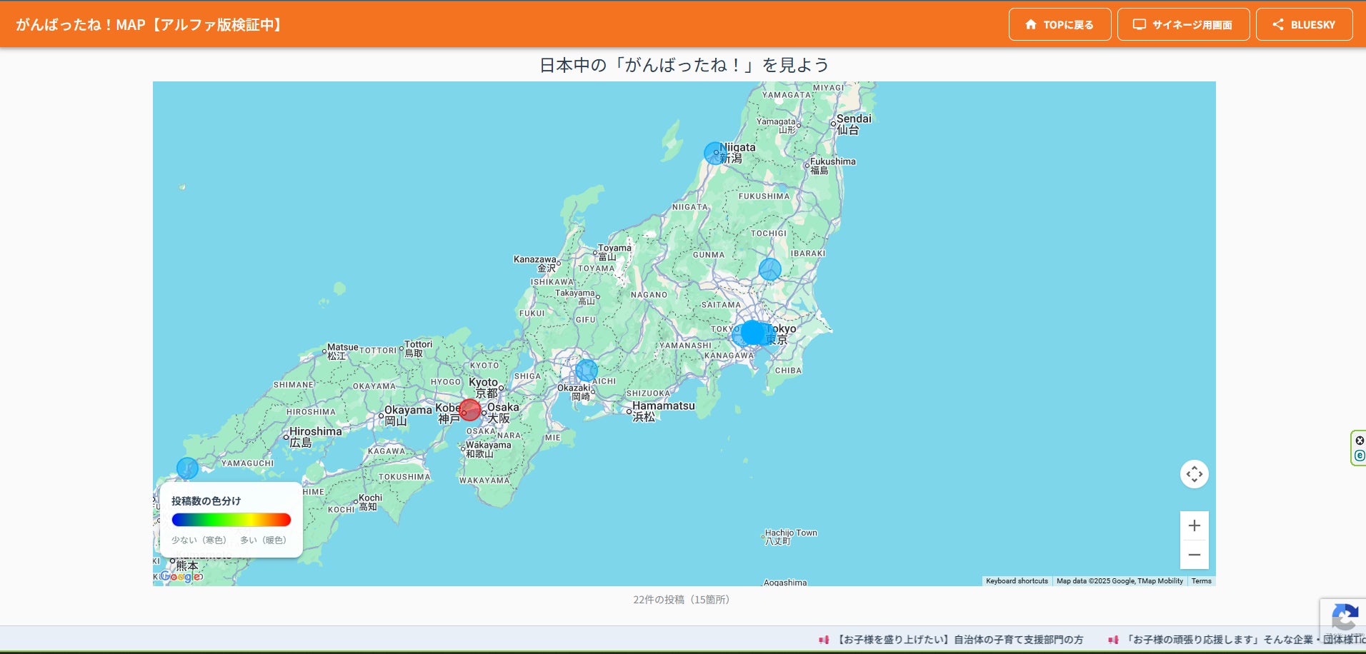 全国の子どもたちの「がんばり」を地図上で可視化地域の応援熱がヒートマップで表示され、地域活性化にも貢献「自分だけじゃない」という連帯感を生み出す