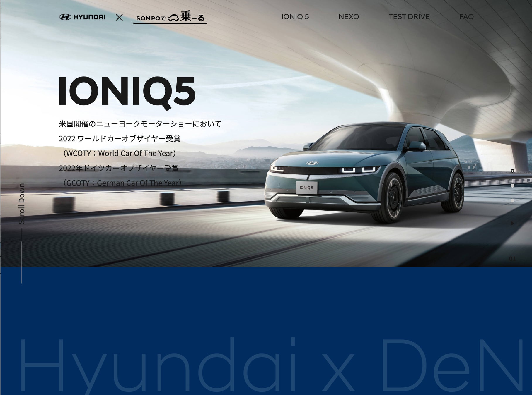 株式会社DeNA SOMPO Carlife(本社:東京都渋⾕区、代表取締役社⻑:水沼 義尚)が提供するクルマ定額サービス※1「SOMPOで乗ーる」( https://sompo-de-noru.jp/ )は、Hyundai Mobility Japan 株式会社(本社:神奈川県横浜市西区、代表取締役社長:李正旭、以下、Hyundai)が2022年5月2日正午から「IONIQ 5(アイオニック ファイブ)」と「NEXO(ネッソ)」を発売することに合わせて、「SOMPOで乗ーる」でも取り扱いを開始することをお知らせします。現時点で「IONIQ 5」と「NEXO」をカーリースで取り扱うのは日本で「SOMPOで乗ーる」のみとなります。