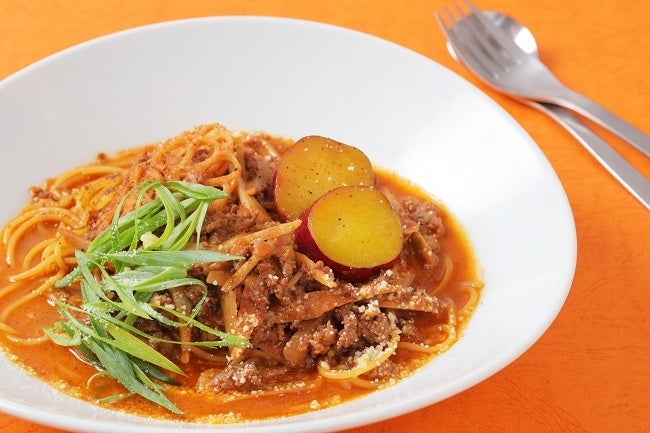 淡路産牛と八丁味噌を合わせた、こななのボロネーゼ。秋に美味しい根菜は、シャキシャキとしたごぼうや蓮根、ほっくり美味しいさつまいもなど食感も一緒にお愉しみください。