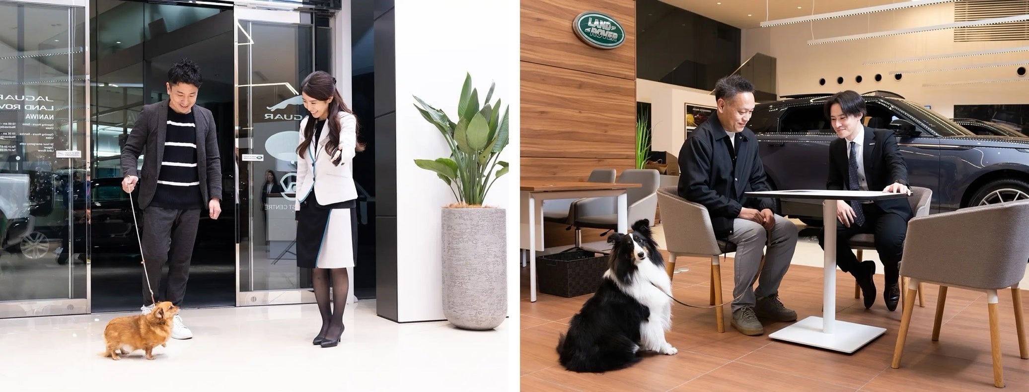 八光のショールームでは2024年1月より「ドッグフレンドリー宣言」と称し、犬連れのお客さまにもご入店いただける体制づくりを整えてまいりました。これは、愛犬家のお客さまからの「犬と一緒にクルマ選びがしたい」という要望に応えたものです。