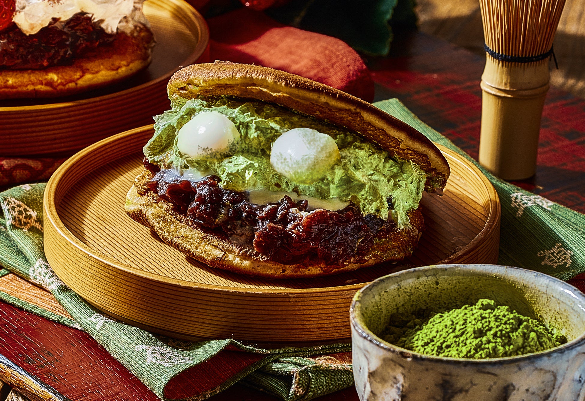 「宇治抹茶淺どら 」は、ふかふかのどら山の皮の間に、香り高い宇治抹茶クリームとマスカルポーネが入った特製生クリーム、そしてもちもちの白玉が挟まれています。またトッピングで宇治抹茶アイスクリームが乗せられます。