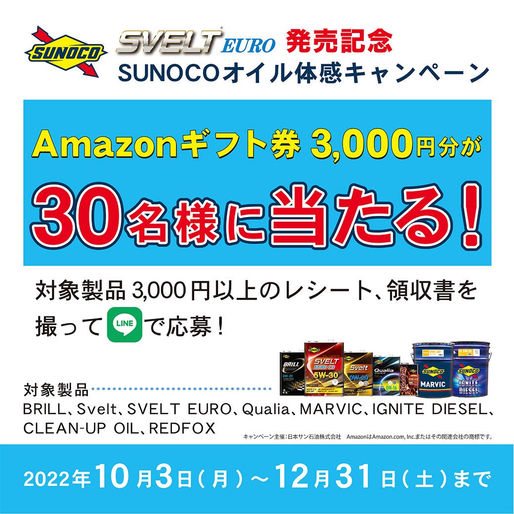 日本サン石油株式会社(東京都千代田区、代表取締役社長:井口 泰秀)は、2022年10月3日(月)からSVELT EURO発売を記念して「SUNOCOオイル体感キャンペーン」を実施いたします。