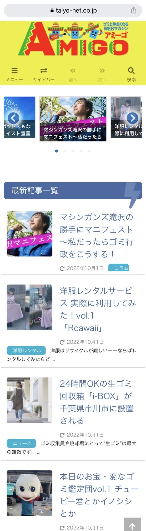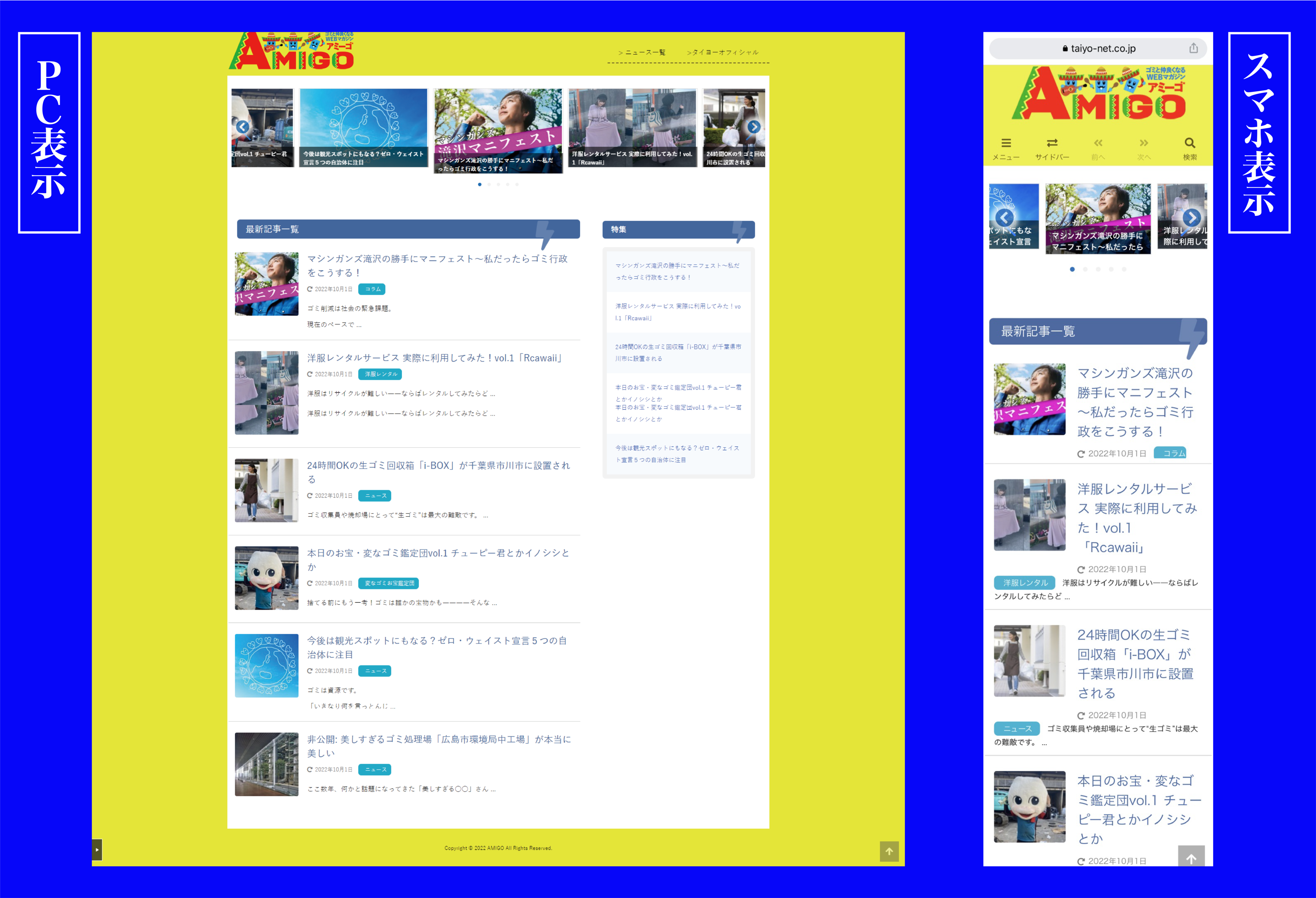 循環型社会において、新しいゴミ収集業を目指す株式会社タイヨー(代表取締役:元山琢然)では、創業70周年を迎えた様々な取組の一貫として、自社製ウェブメディア『AMIGO』を開設しました。