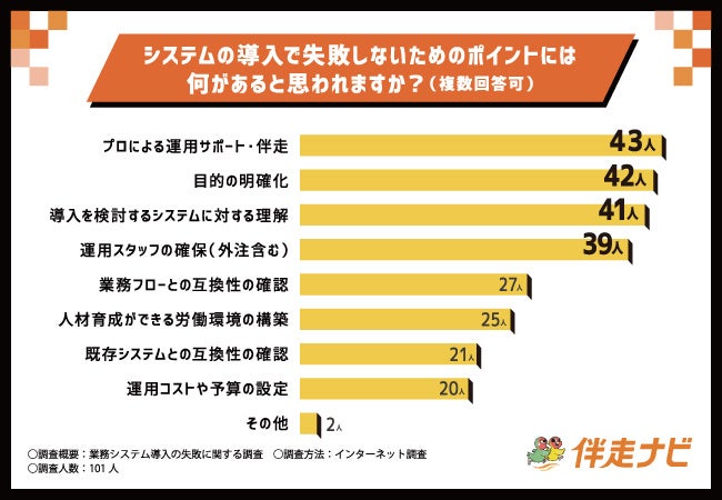 そこで、「システムの導入で失敗しないためのポイントには何があると思われますか?(複数回答可)」と質問したところ、