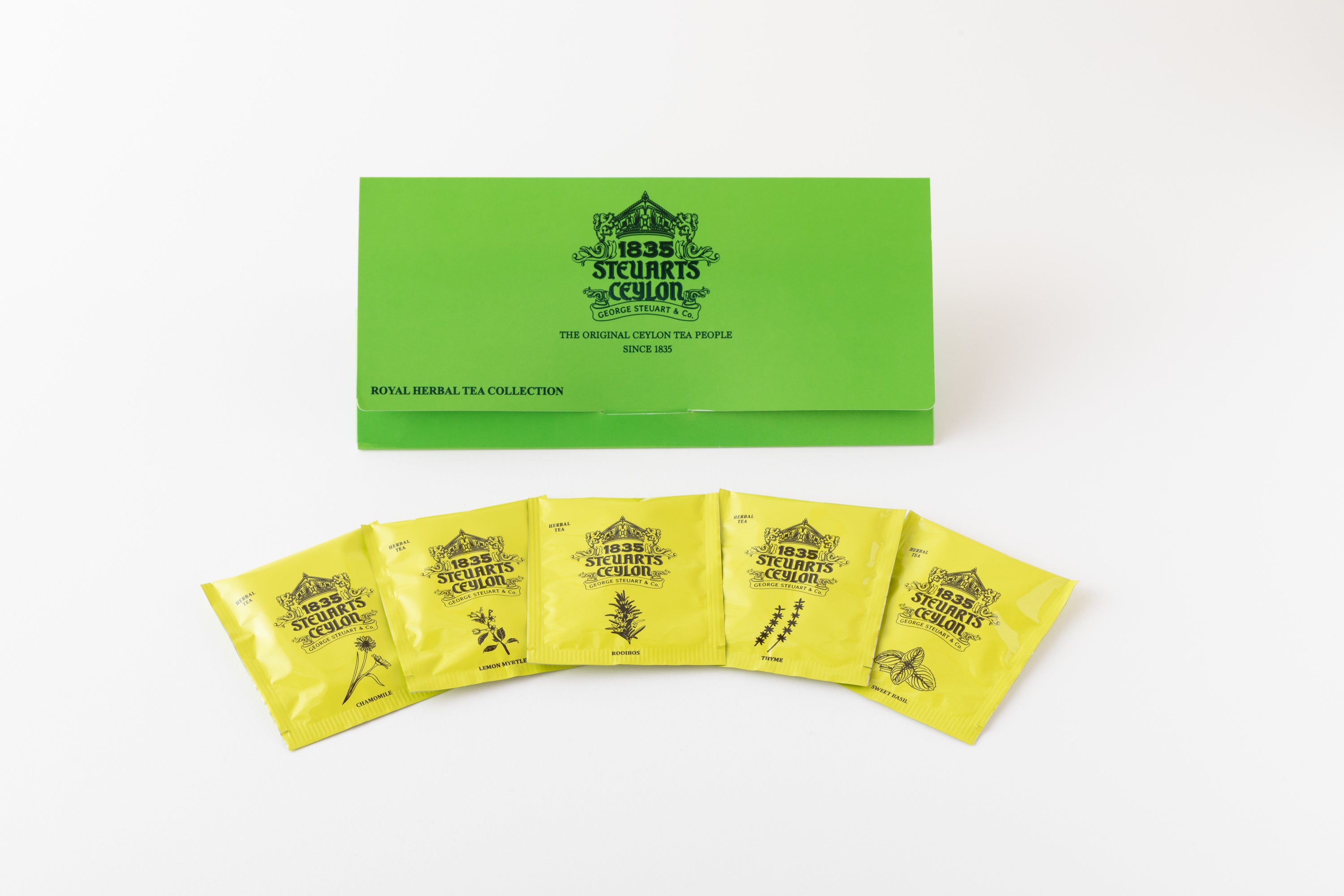 1835年創立、スリランカ最古の紅茶ブランド「ジョージスチュアートティー(George Steuart Tea)」は、高品質茶葉の剪定から伝統技法での製造まですべて現地で行なっており、同国を代表する老舗企業として知られています。格式高く上質なアロマは、多くのホテルやANA/JALの国内全てのラウンジで提供されています。会社設立175年目の2010年には英国王室に献上し、エリザベス女王から写真入りの礼状を贈られました。日本では2014年から正規販売が始まりました。オリジナリティ溢れたフレーバーを提供し続け、今回のロイヤルハーブティーは第6弾となります。