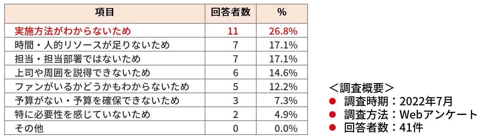 「ファンの声を聞いたことがない」と回答した人のうち「ファンの声を聞くこと」を行っていない理由