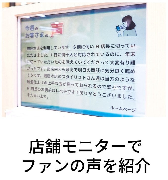 集まったファンの声を店舗のモニターで紹介し、他のお客様にシェアしたり、社内のYouTubeチャンネルで紹介して従業員モチベーションアップにもつなげています。
