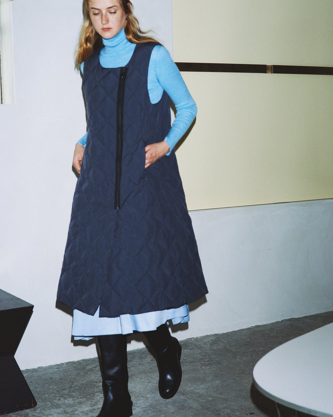 2way仕様のジレワンピース、インナーダウンとしてだけでなくコーデの主役アイテムになる