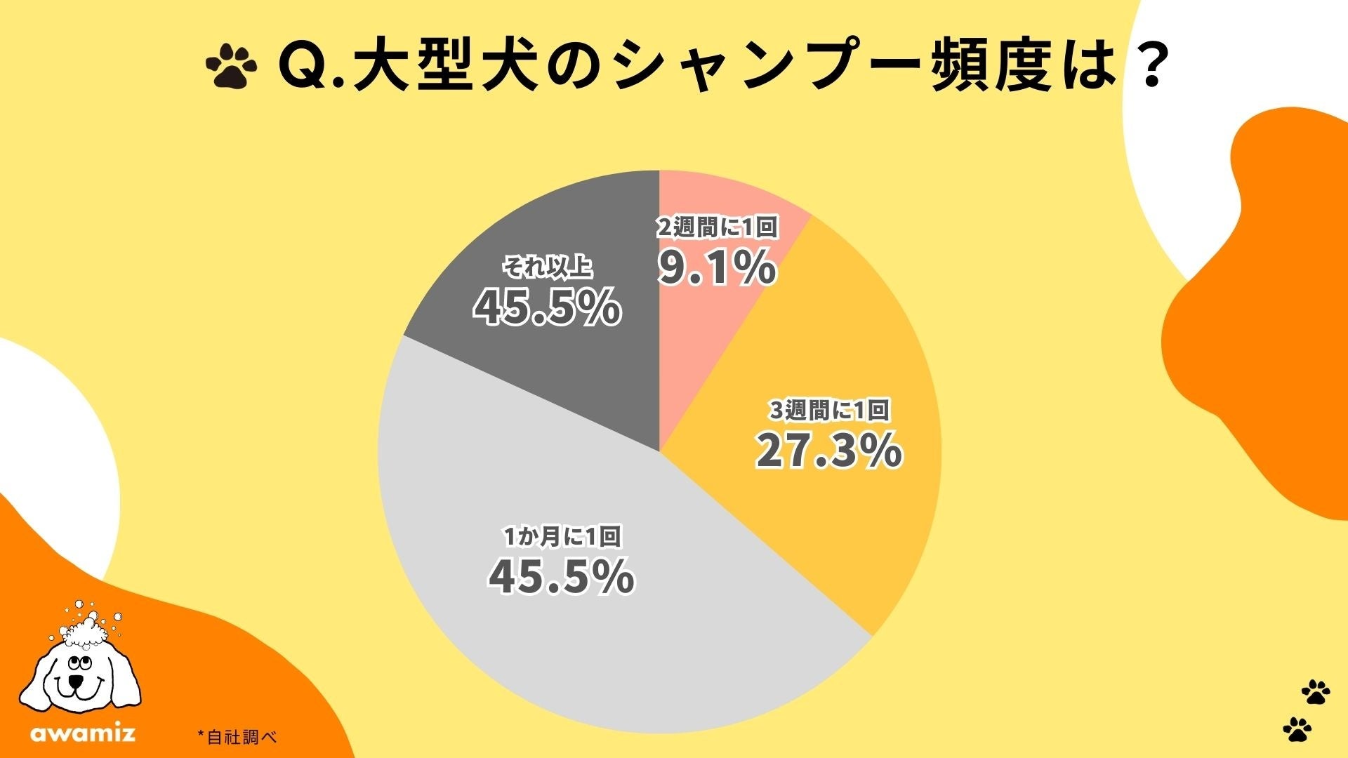 大型犬は、1か月に1回のシャンプーが45.5%と最も多い結果となりました。