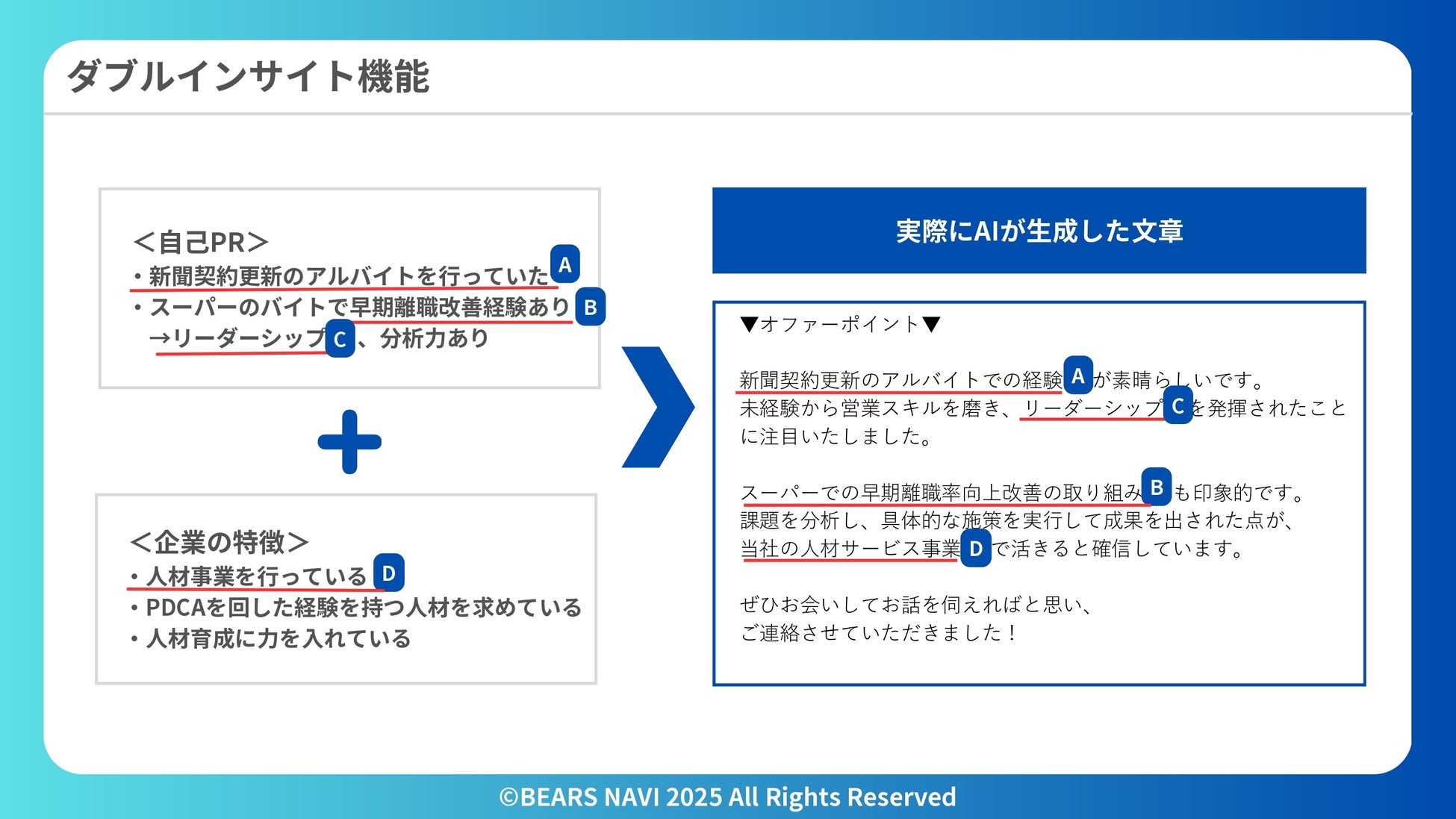 ✦ ダブルインサイト機能(求職者情報・企業情報の同時学習)