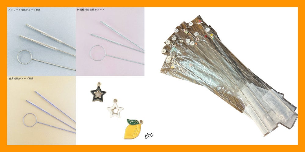 胃ろうチューブを掃除するブラシ。内径に合わせてブラシ毛を長く、先端部分はブラシ毛を短くすることで接続部分もしっかり洗うことが可能。 先端はチューブ内を傷つけないよう樹脂でコーティングしています。 手軽に使えるようにフックにひっかけるリングもついています。
