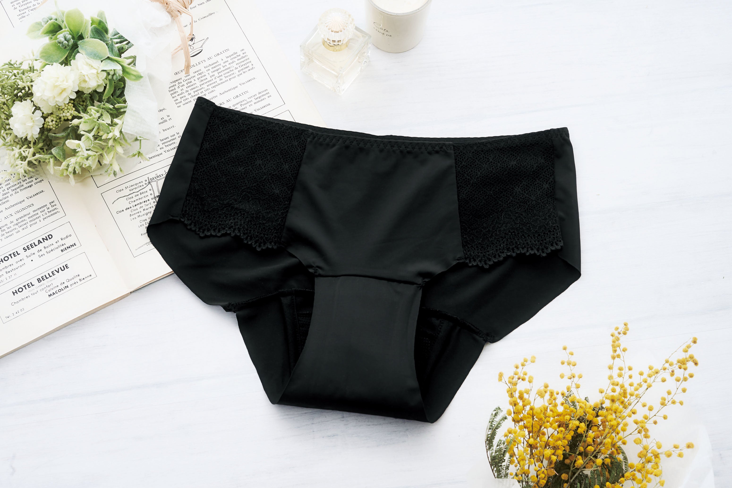 サイドにレースをあしらい、女性ホルモン変化にゆらぐ日でも快適にすごしていただけるよう、デザインにもこだわりました。