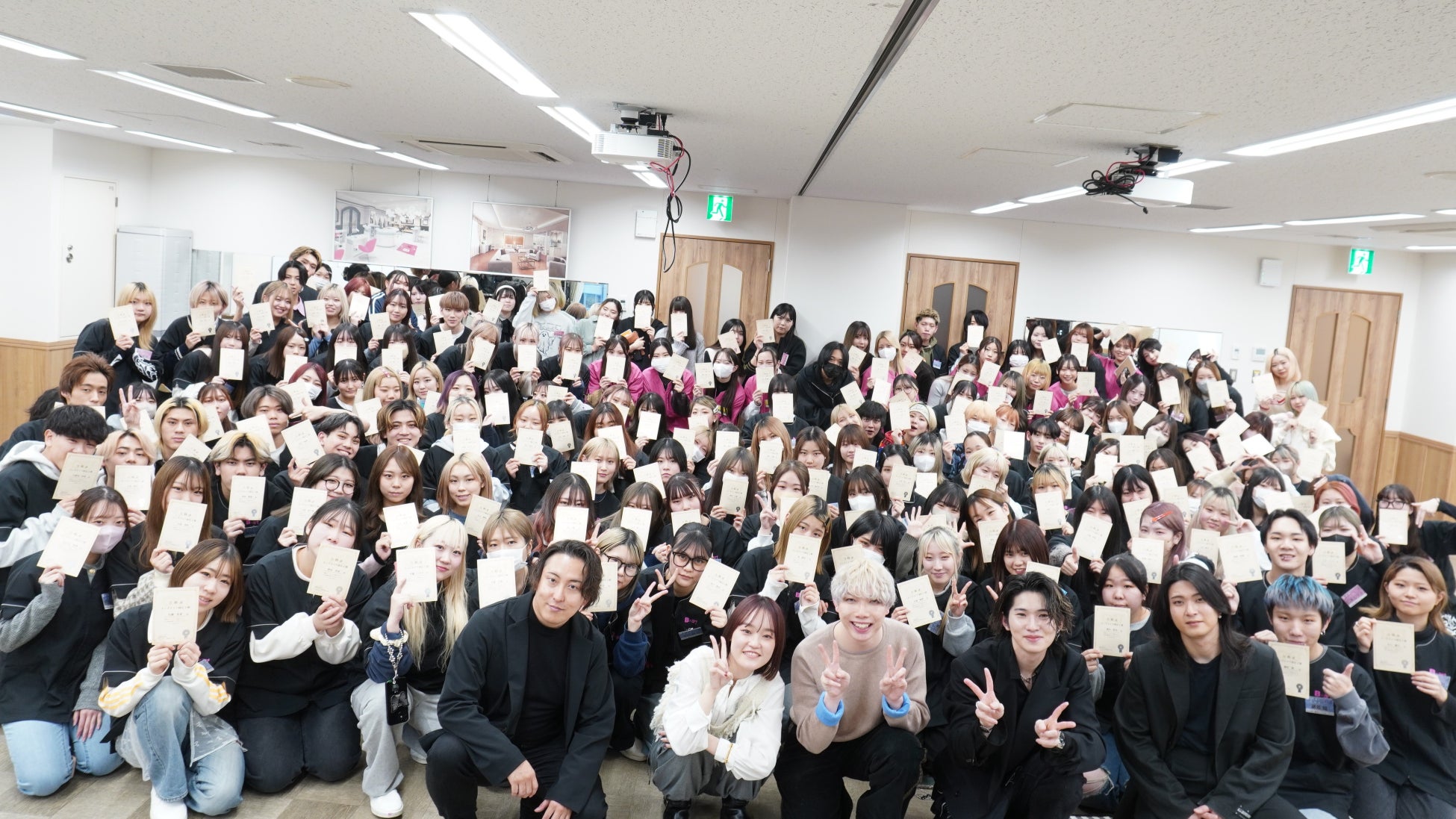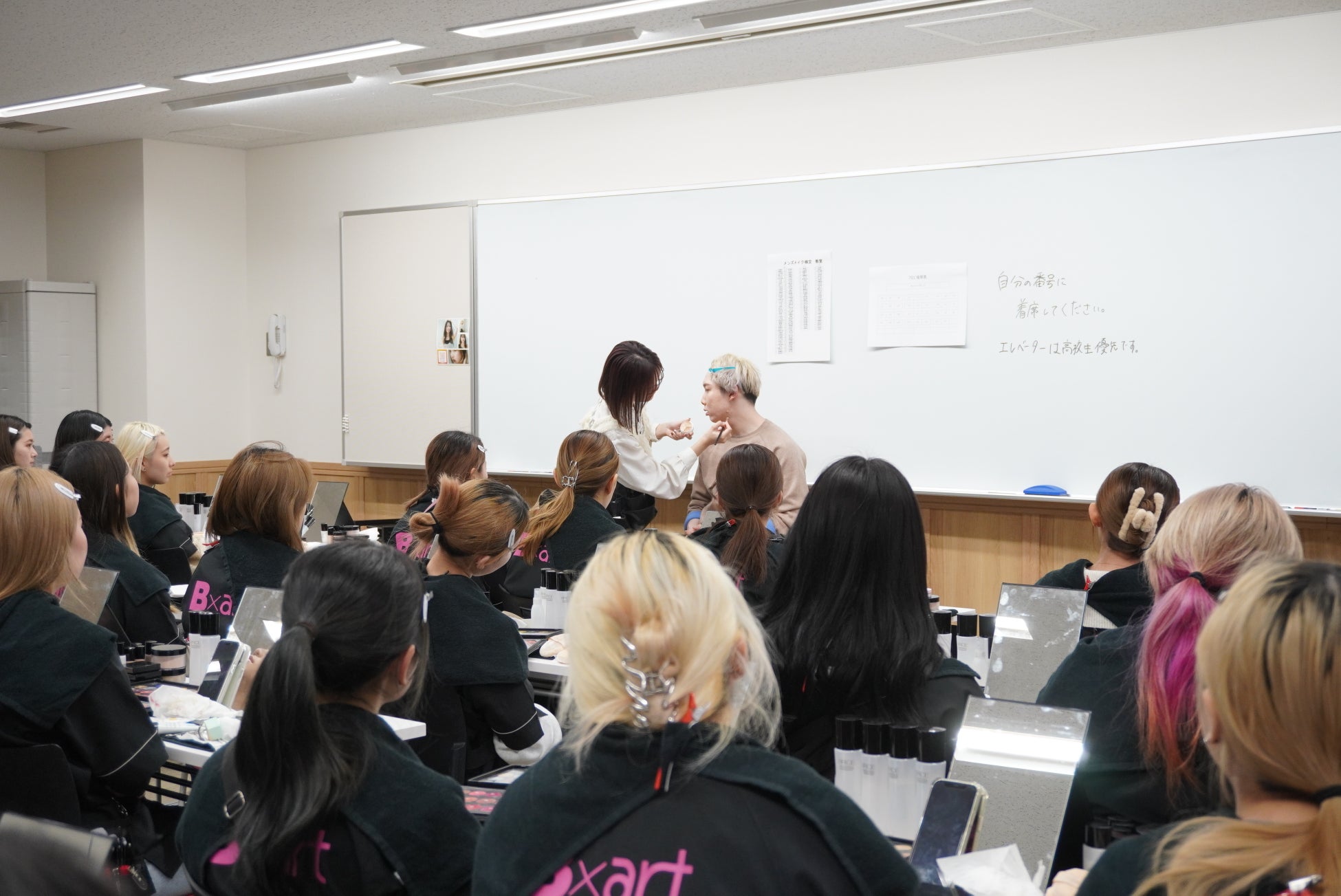 美容学生にメイクアップアーティストの撮影メイク技術をショー形式で楽しんで学べる機会がオプションで付いた2級団体受験プログラムの提供を開始。初回を2024年12月7日(土)に学校法人三幸学園の札幌ビューティーアート専門学校において実施しました。