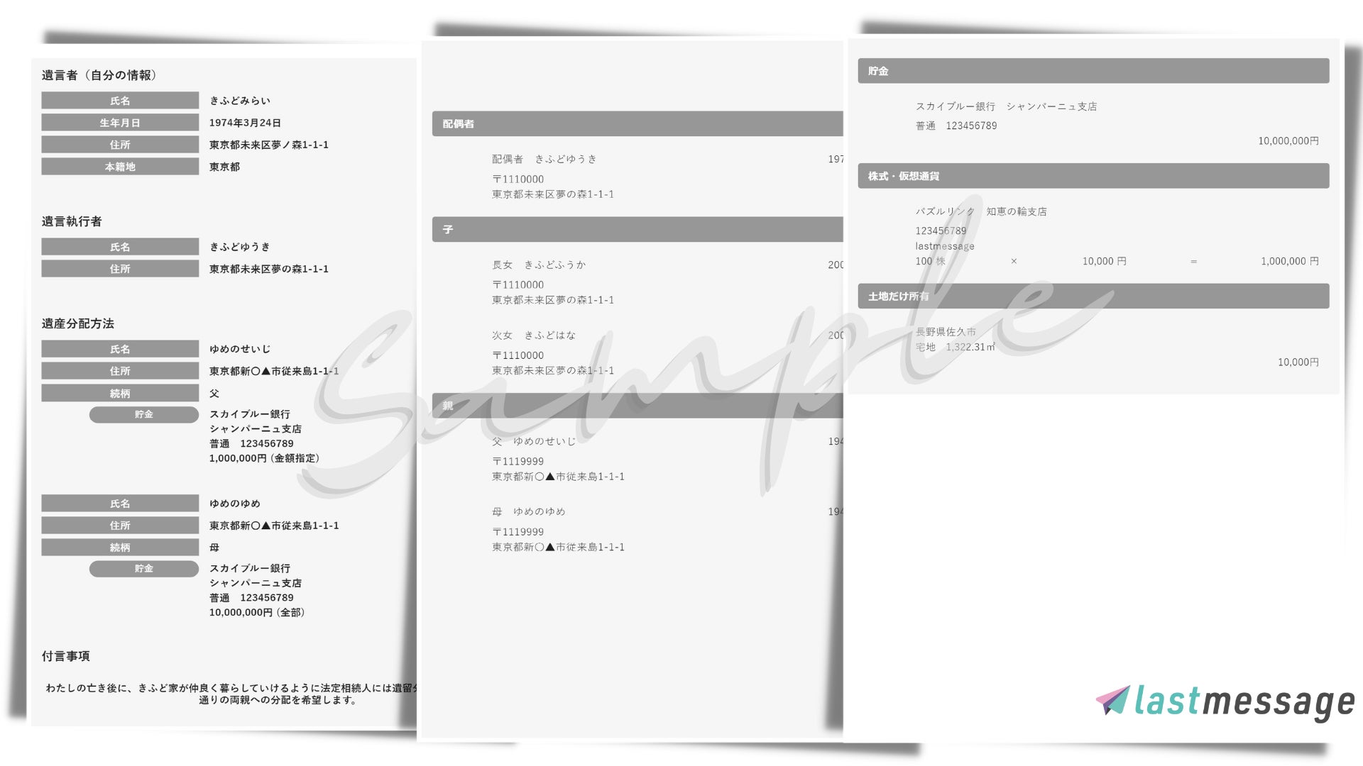 株式会社 パズルリング(東京都港区六本木/代表取締役:山村幸広)は、万が一のときにデジタル遺言*を発動する「lastmessage(ラストメッセージ)」サービスにおいて、遺言書の専門知識がない人でも、自分ひとりで公正証書遺言の原案を作成することができる「1人でできる!公正証書遺言」の新機能をリリースいたしました。