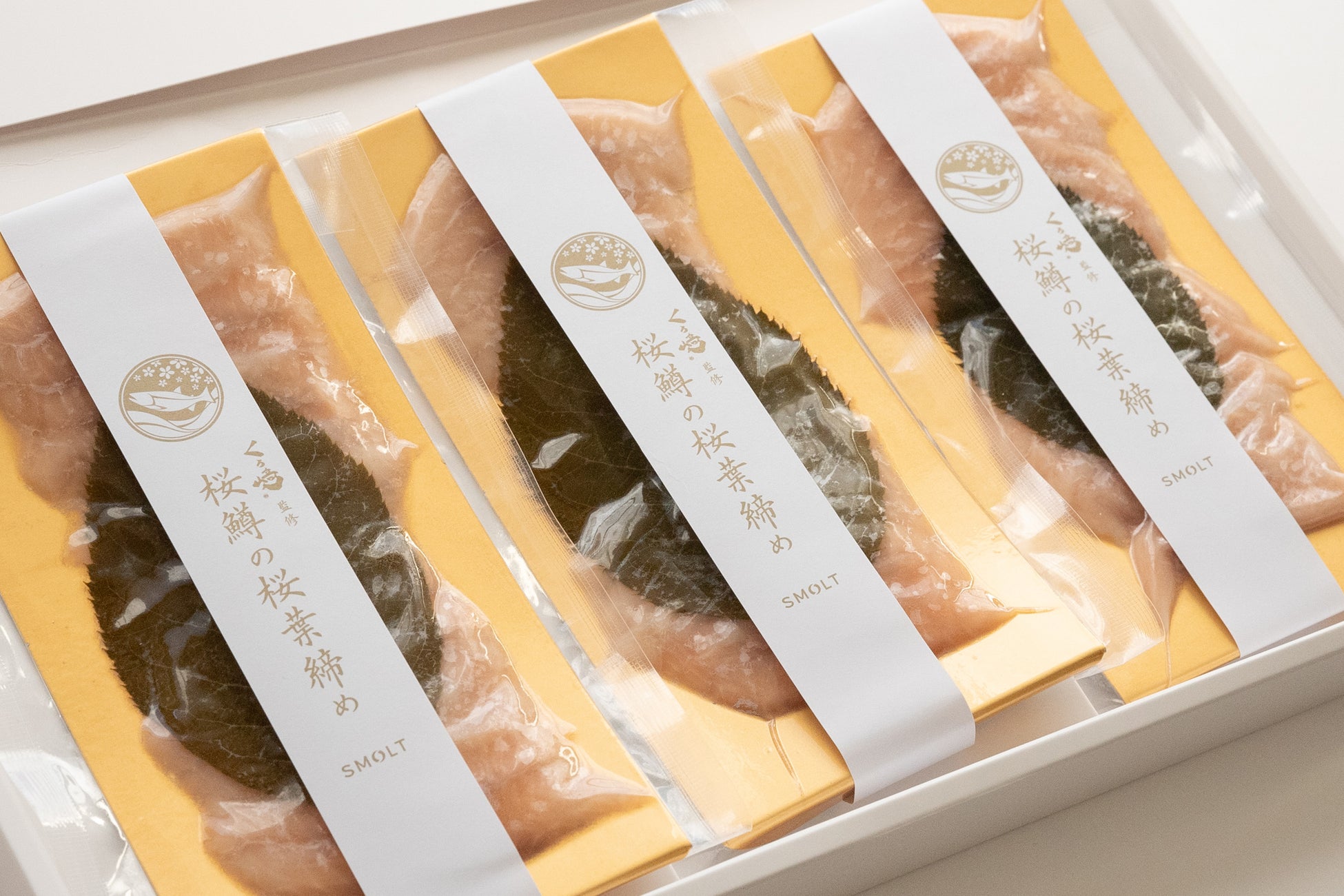 「本桜鱒の桜葉締め」は、宮崎大学発のスタートアップである株式会社Smoltが循環養殖で生産する桜鱒を使用した商品です。桜鱒は国内のサーモン市場全体の流通量0.3%しかない希少なサーモンであり、この桜鱒を循環養殖により生産した技術力および希少性が好評を呼び、クラウドファンディングサイト「Makuake」にて、公開後わずか2時間で目標を達成しました。