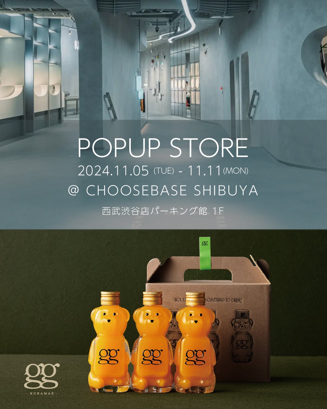 「COFFEE & BAR GENIE gg KURAMAE」は、渋谷西武 CHOOSEBASE SHIBUYAにて、くまボトル”Green Good Bear”初のポップアップストアを開催します。