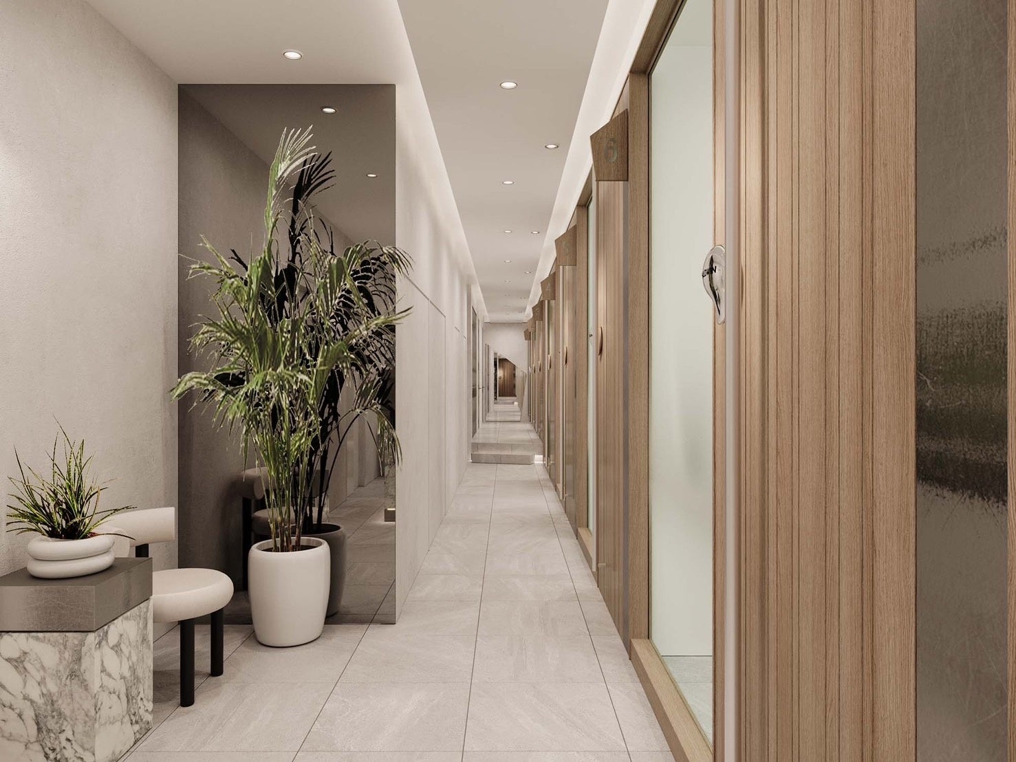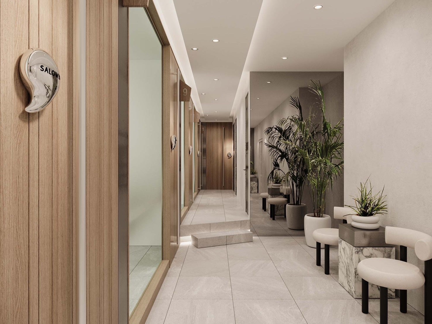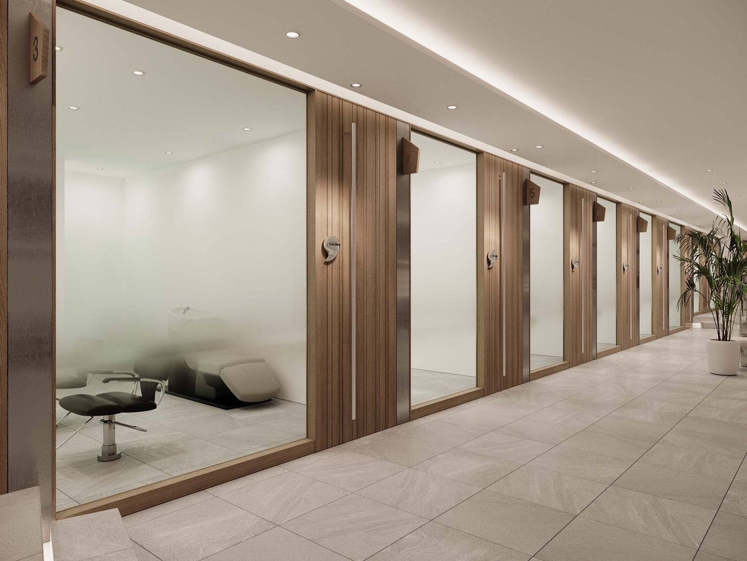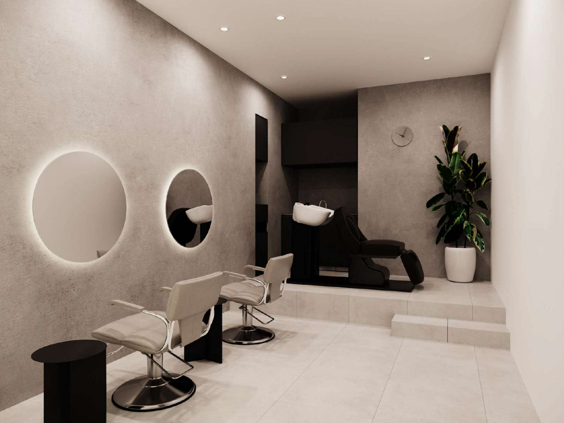 『me by ,, 』はセット面が2~3席とシャンプー1台が設置可能な完全に独立した個室を提供しています。