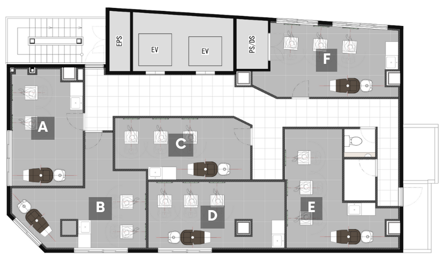E:セット面3席、シャンプー1台