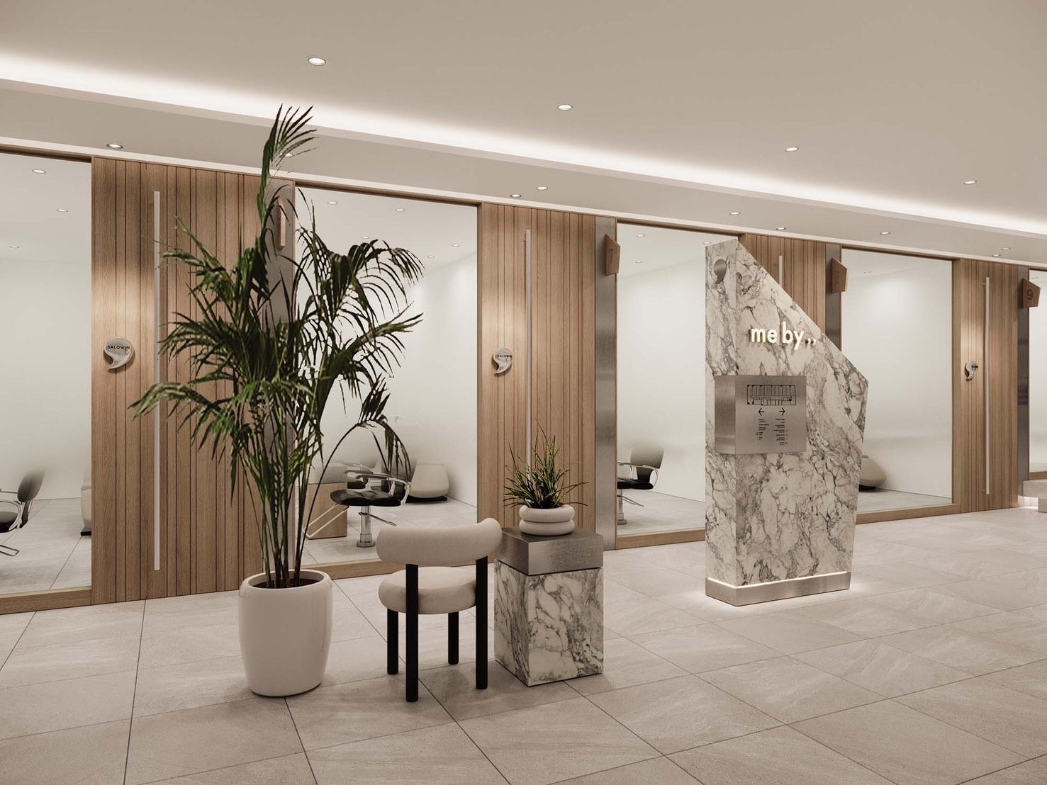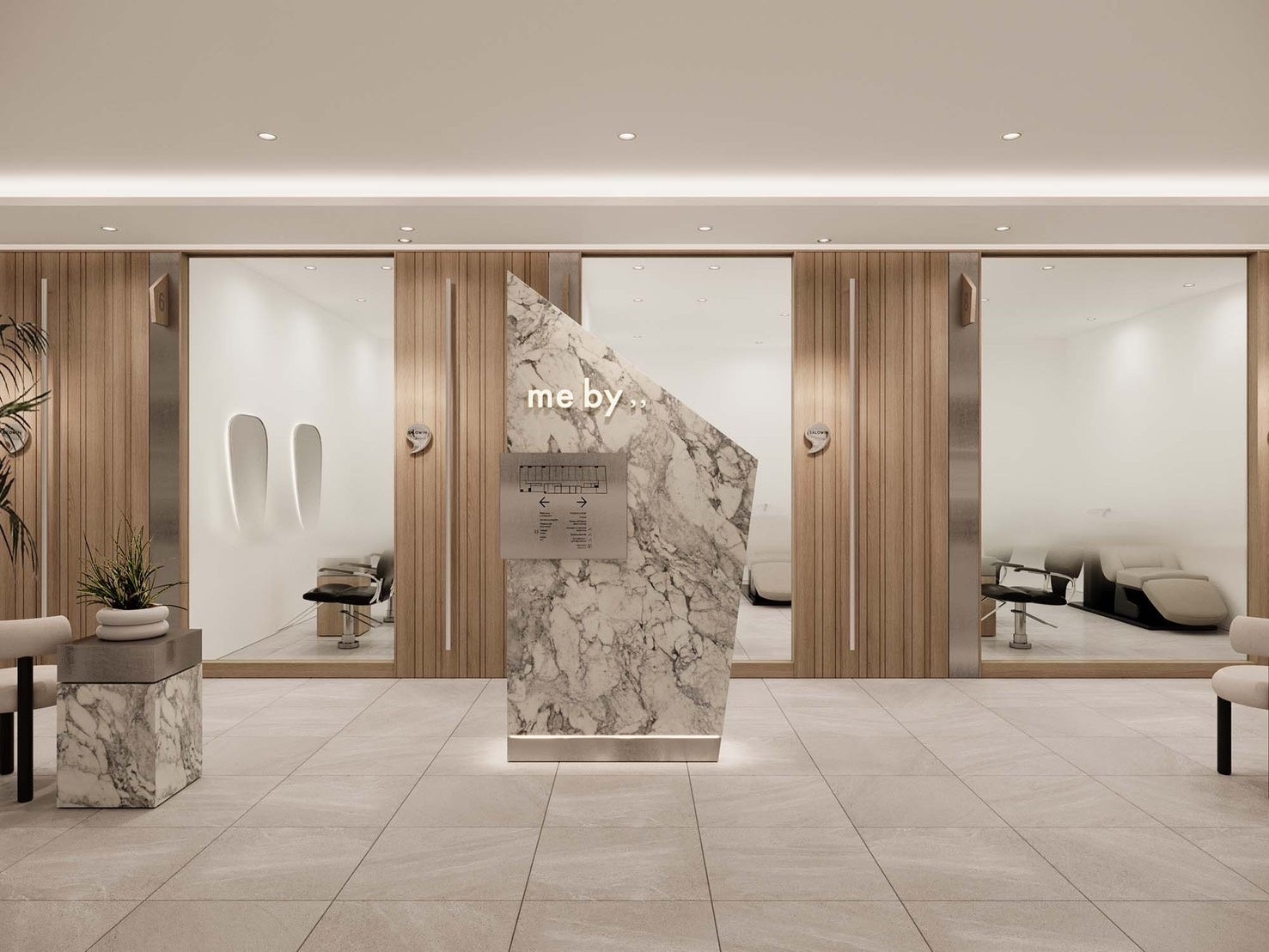 完全に独立した2~3席の美容室が集まる空間『me by ,, 』
