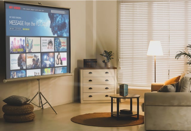 - 350ml缶サイズでも100インチの大画面を投影。Hi-Fiスピーカーで音の再現力も秀逸。