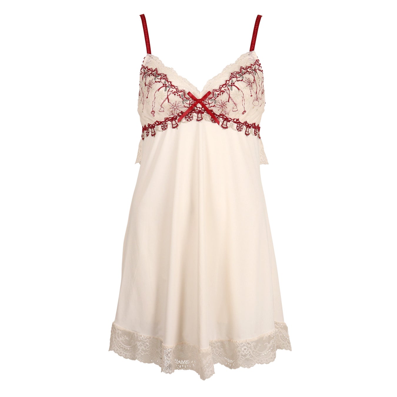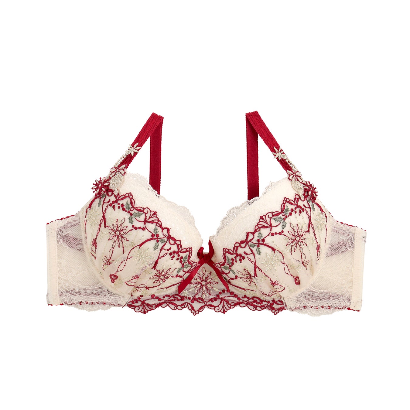 クリスマスに華やかさを彩るスワッグや壁飾りをモチーフにし、様々な手法を駆使したアップリケで立体感贅沢にラメ糸を使用した豪華なシリーズです。新しいアイテムとしてベビードールセットも登場しています。