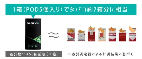 1箱(5POD入り)でタバコ約7箱分の吸引回数を誇っています。