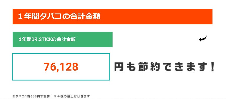 タバコを1日20本吸う人で年間76128円も節約できる計算です。