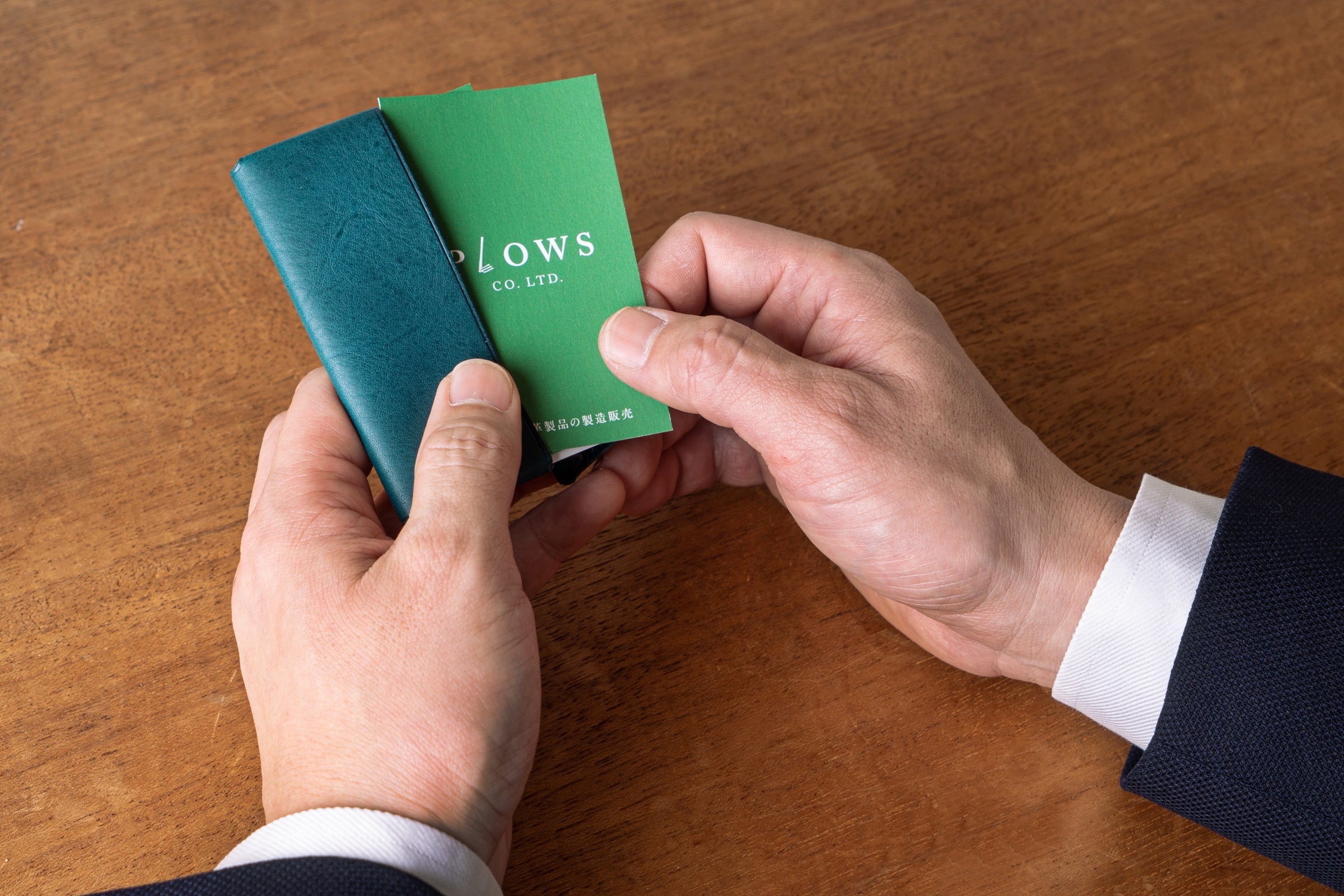 取り出しにかかる時間はわずか一秒。二秒で名刺交換が可能です。