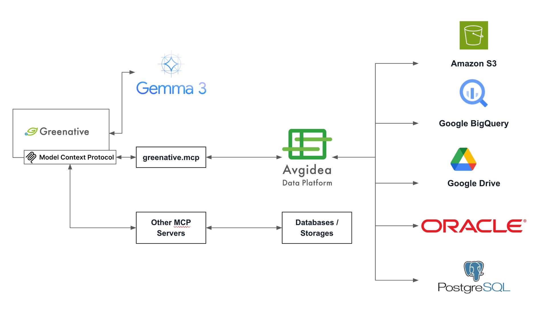 Greenative は Gemma 3 をはじめとするオープンな生成 AI モデルと標準化されたデータアクセス手法である MCP を活用し、プライベートな環境下で自社データと生成 AI を連携させることができます。