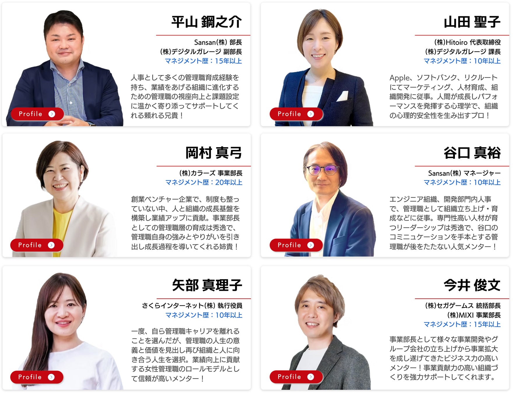 「管理職育成」と「ビジネス経験」の両方を兼ね備える、経験豊富なメンター陣が丁寧にサポート