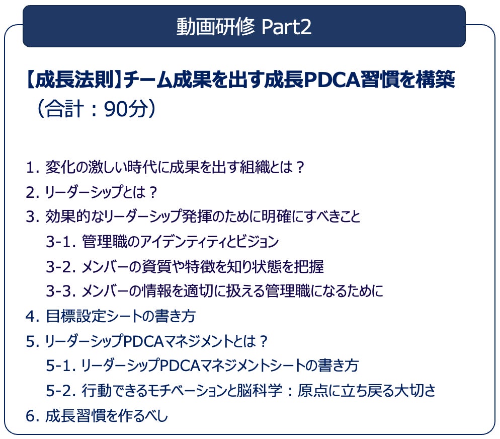 管理職が自分らしく活躍する早期戦力化&変革のための、管理職の「型」と「成長法則」をクラス参加前に学びます。