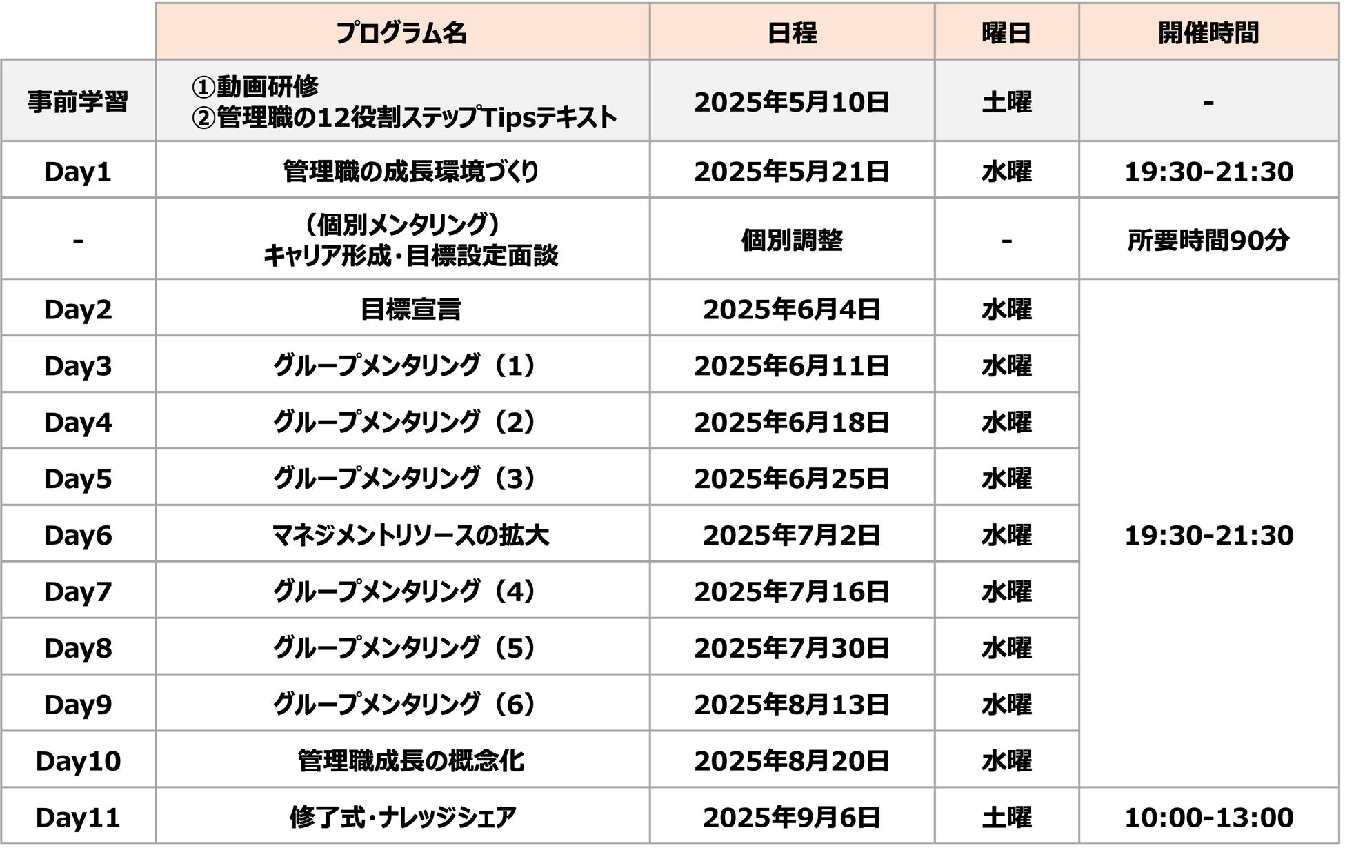 ピープルマネジメント(メンバーをもつ)を行う管理職で、プレイヤーからマネジメントへのトランジション期を乗り越えるために、多様な価値観を取り入れながら管理職としての可能性を広げ成長を加速したい方にオススメです。