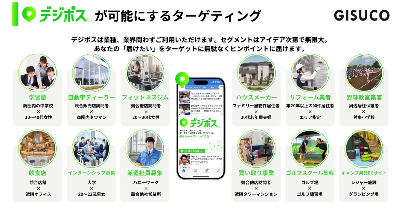 株式会社GISUCO(本社:東京都港区)が提供するGPSマーケティング広告【デジポス】は2024年2月のローンチより1年半が経過し、様々な分野でご利用いただいております。 この度、新サービス『デジポスサーチ』の試験提供開始をお知らせいたします。