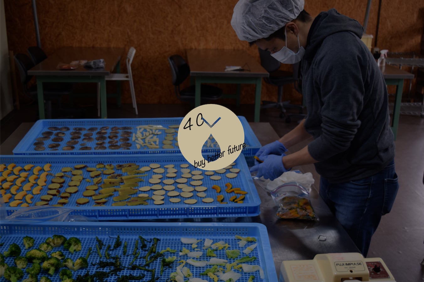 フードロス削減と地域課題解決を理念に、全国6拠点(稼働2ヶ所、新規4ヶ所)で、地元のロス野菜を回収して乾燥加工する地域密着の社会事業。自由水分量を12%以下に抑えることで微生物の繁殖を止めるエアドライにより、無添加で香りが強く、保存期間の長い乾燥野菜を生産しています。また、拠点エリア内で地域の農家と連携して回収加工する“小規模分散生産方式(複数拠点のクラウド在庫管理により輸送時のCO2排出を低減する最適な配送ルートを提供)”を採用し、従来の大量生産大量消費による余剰生産を抑制し、地域の経済活性化にも寄与します。