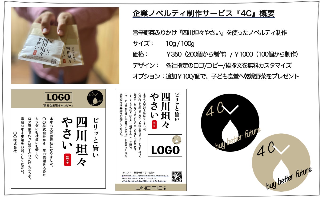 社会貢献を可視化できる企業ノベルティ『4C』の受付を開始 〜社会とカラダに良い野菜加工品を作るhakkenの年末企画〜