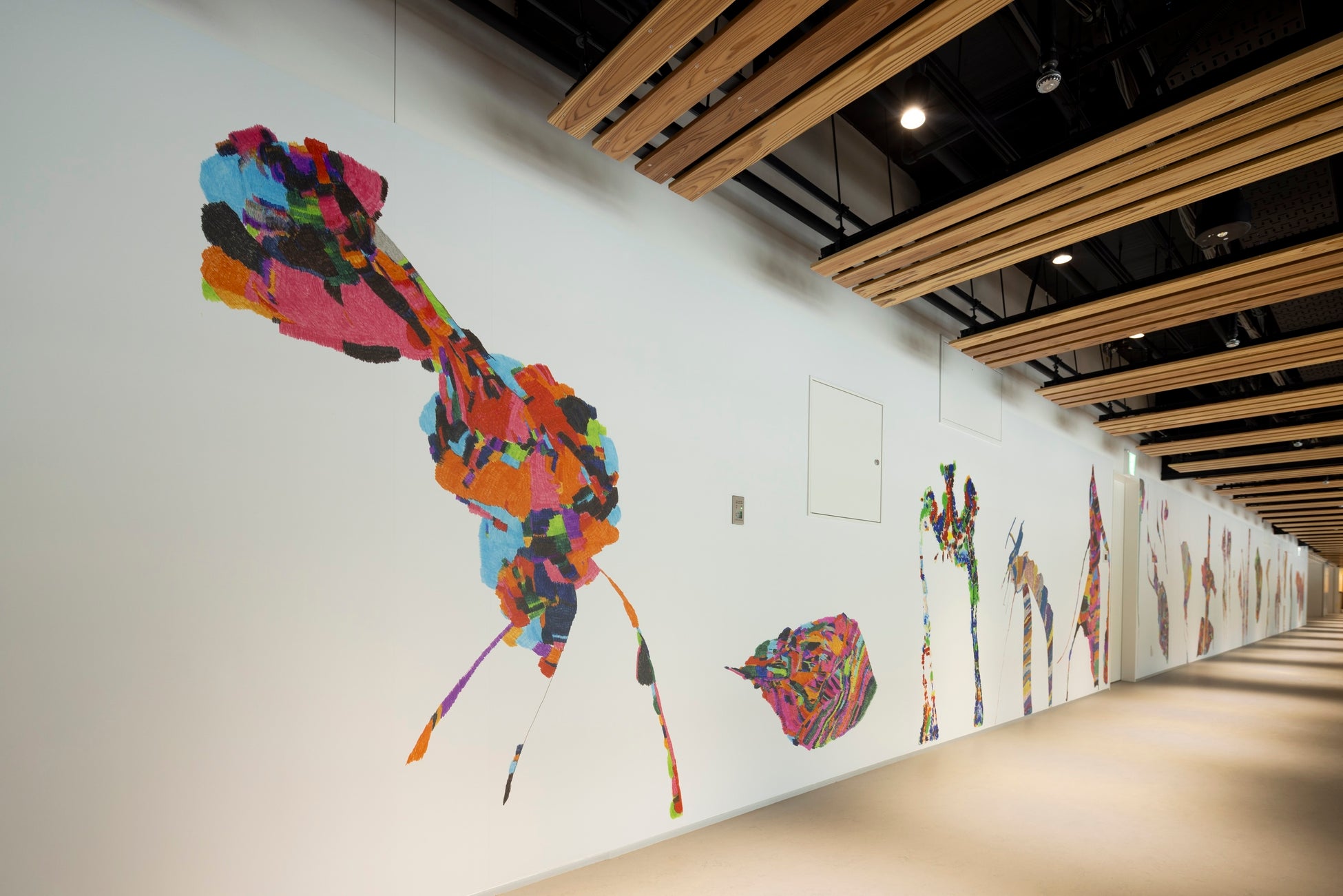 株式会社ヘラルボニー(本社:岩手県盛岡市、代表取締役 Co-CEO:松田 崇弥、松田 文登、以下、ヘラルボニー)の契約作家47名・130点、STATION Ai内に展示されています。新たなビジネスアイデアやイノベーションの創出へと繋がることを期待し、個性溢れる作家のユニークなアート作品が「STATION Ai」を彩っています。