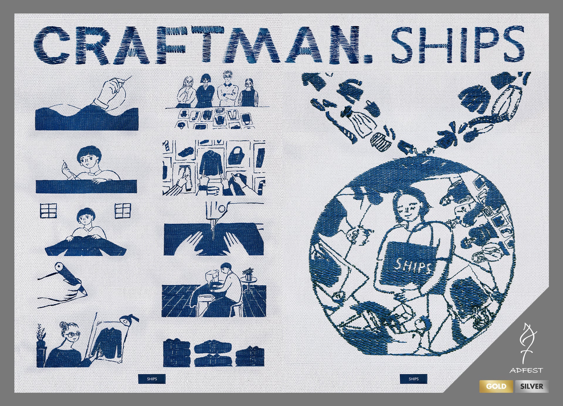 ADFESTは1998年に創設された、アジア太平洋地域を代表する国際的なクリエイティブ・フェスティバルです。広告、マーケティング、デジタル、プロダクションなど、幅広い分野における優れたクリエイティブを称える、世界的に権威のあるアワードとして知られています。今年度は『Human+』をテーマに、AIなどテクノロジーが進化する世の中で、人間の創造性が新たな価値を生み出せるかが問われる中、本キャンペーンでは、「最高の普通」を掲げ歩んできたSHIPSの50年間の揺るぎない姿勢を「青いまま進む。」というステートメントに込め、デジタル加工を一切排除し、素材には「船の帆」にも使われるキャンバス生地や、ブランドを象徴する青い糸を使用し、洋服作りの原点である「刺繍」により、圧倒的なクラフトマンシップで視覚化。