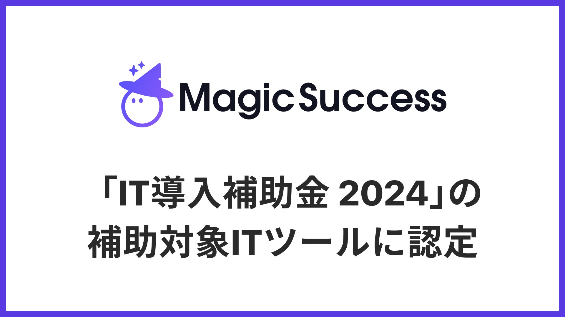 CSオペレーションクラウド「MagicSuccess」が、「IT導入補助金 2024」の補助対象ITツールに認定