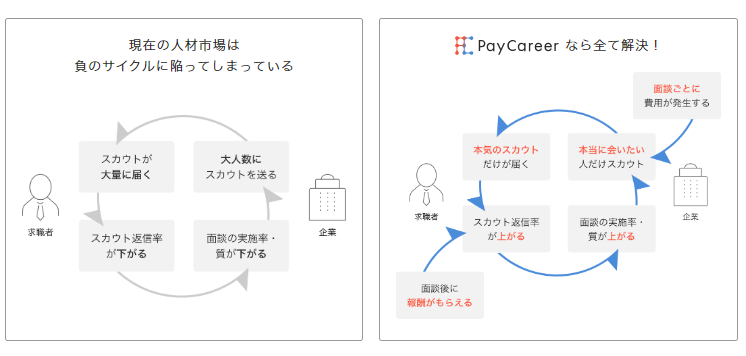 PayCareerが導入した「面談課金」モデルは、転職市場における負のスパイラルを解消するために生まれた仕組みです。