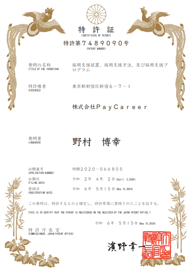 この度、PayCareerの「面談課金」の仕組みが特許を取得したことをお知らせいたします。